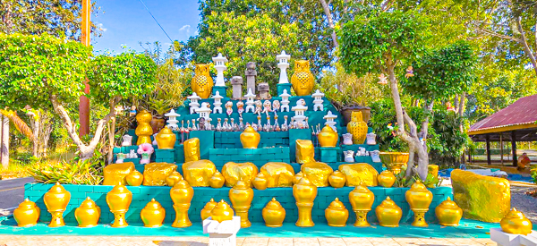 สามพระอรหันต์บันดาลโชค ความสำเร็จ พระพุทธรูปปูนปั้น สร้างขึ้นในวันที่ ๒๕ กุมภาพันธ์ พุทธศักราช ๒๕๖๖