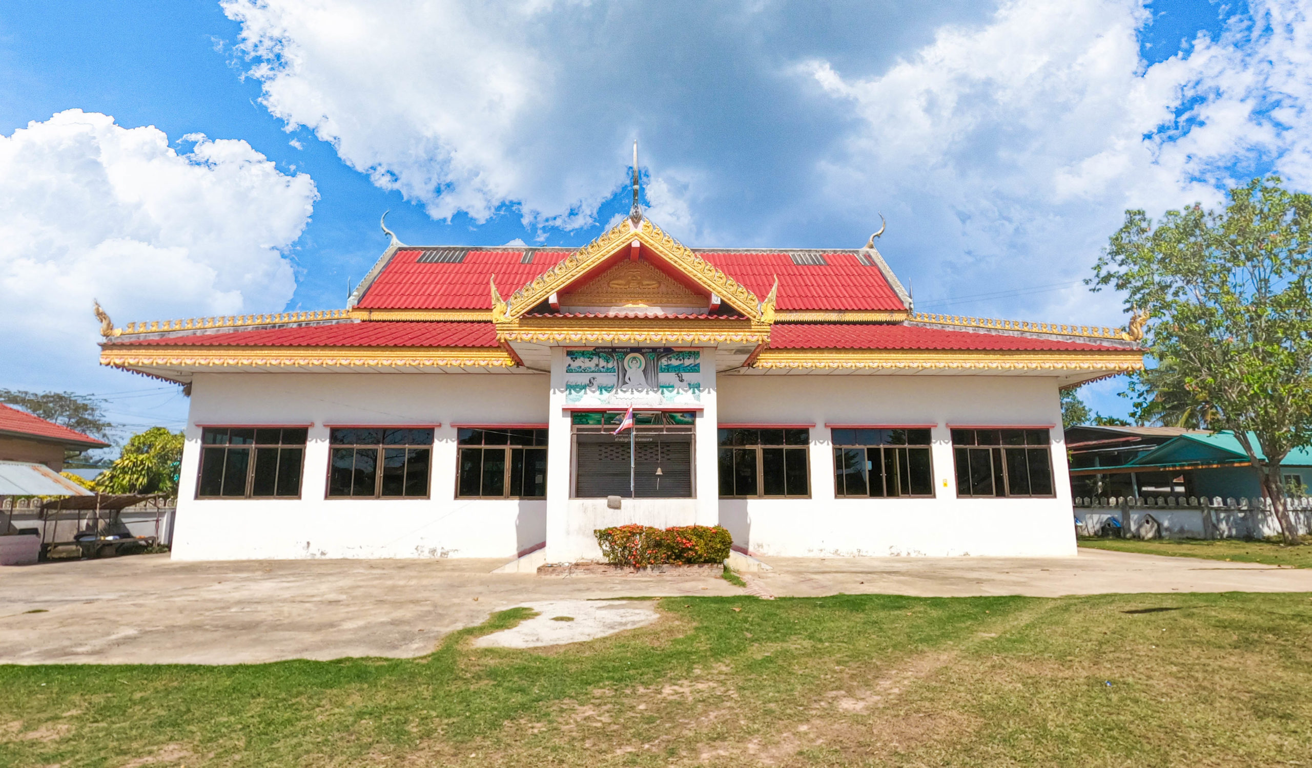 ๒. ศาลาการเปรียญ ๑ หลัง กว้าง ๑๒ เมตร ยาว ๒๒ เมตร