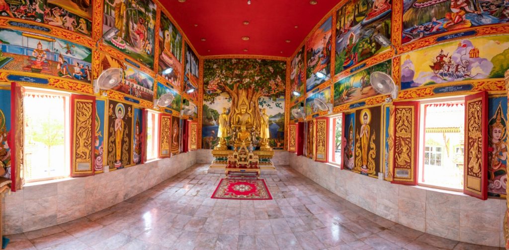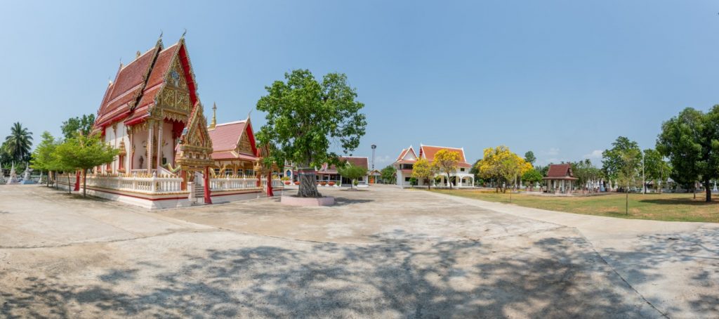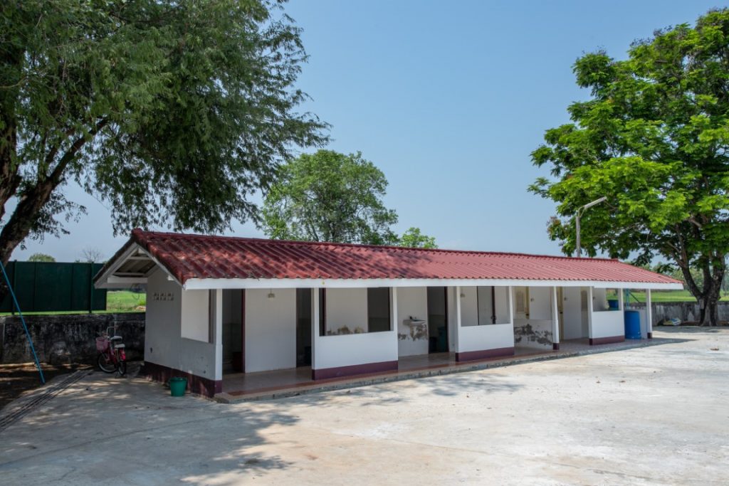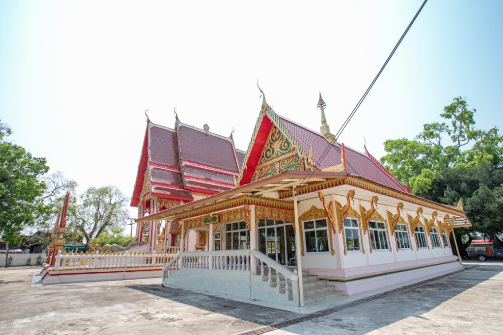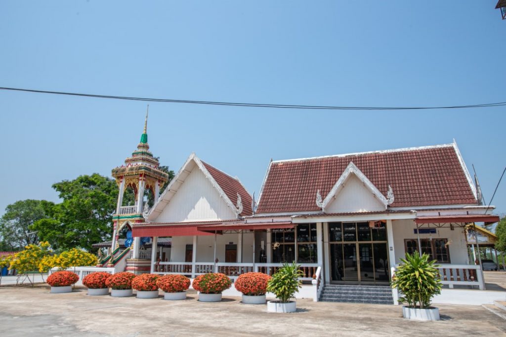 ๒. ศาลาการเปรียญ กว้าง ๑๑ เมตร ยาว ๑๘ เมตร เป็นอาคารคอนกรีตเสริมเหล็ก