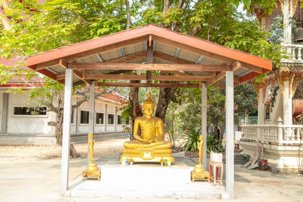 เป็นองค์พระพุทธรูปปางมารวิชัย มีขนาดหน้าตัก ๔๐ นิ้ว นั่งประดิษฐ์สถานอยู่บนแท่นในท่าขัดสมาธิ พระกรด้านซ้ายวางหงายฝ่ามือไว้ที่หน้าตัก ส่วนพระกรด้านขวาวางคว่ำฝ่ามือไว้บนพระชานุ (เข่า) พระกรรณ (หู) ยาน เกศมีเปลวแหลม เดิมพระเกศและพระกรด้านซ้าย ช้ารุดหัก จึงได้ปรับปรุงต่อเติมให้เหมือนเดิม ส่วนองค์พระหล่อด้วยวัสดุอะไรไม่มีหลักฐานแน่ชัด บ้างก็ว่าจากหินศิลาแลง ท้ามาจากปูนหรือทองเหลืองบ้าง ซึ่งผู้เรียบเรียงยังไม่มีหลักฐาน หรือข้อมูลในการพิสูจน์จากนักโบราณคดี องค์หลวงปู่มีพระวรกายขรุขระ ไม่เรียบ ทาทับด้วยทองเปลวแบบ กระป๋อง ซึ่งชาวบ้านคนใดที่ประสบความสำเร็จจะมาแก้บนหลวงปู่โดยการปิดทองและร่วมท้าบุญ อาจจะเป็นด้วยในสมัยก่อน ด้านเทคโนโลยียังไม่เจริญ
