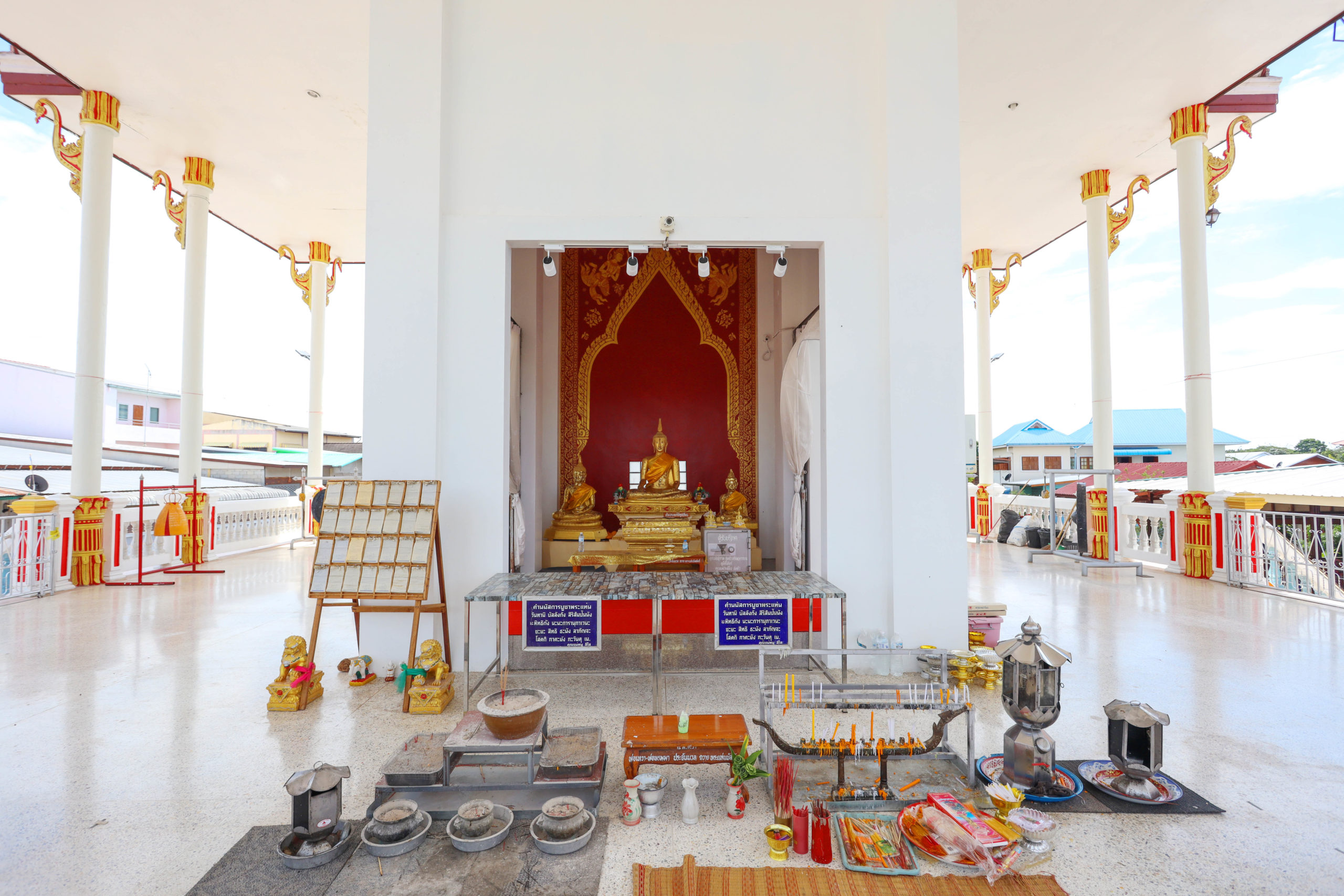 ณ บริเวณที่ลานพระแท่นแห่งนี้ แต่ก่อนเล่าสืบต่อกันมาว่า บริเวณแห่งนี้มีต้นไม้ปกคลุมหนาทึบทั่วบริเวณ ซึ่งเป็นแหล่งที่อยู่อาศัยของสัตว์ป่านานาชนิดจวบกระทั่งขุนสาหร่ายได้ตามจับคนร้ายที่ก่อคดีหนีมาจากเมืองภูเขียว มาหลบซ่อนอยู่บริเวณแห่งนี้ขุนสาหร่ายจึงบุกเข้ามาจับผู้ร้ายได้ ก็ได้พบเห็น แท่นบูชา และพระพุทธรูปสำริด อยู่ในบริเวณป่าทึบแห่งนี้ พระพุทธรูปที่พบนี้ จะวางอยู่ข้างๆ แท่นหินทรายขนาดใหญ่ โดยมีใบเสมาล้อมรอบอยู่ ๘ ทิศ เมื่อเห็นเป็นดังนั้น ขุนสาหร่าย เห็นว่าคือสิ่งศักดิ์สิทธิ์ ท่านจึงชักชวนให้ชาวบ้าน มาบูรณะเพื่อที่จะได้เป็นที่กราบไหว้เคารพบูชา ชาวบ้านจึงได้พร้อมใจกันมาบูรณะบริเวณนี้ ให้เป็นลานกว้าง สะอาดตา สมกับเป็นสถานที่ศักดิ์สิทธิ์และเรียกบริเวณนี้ว่าลานพระแท่น ส่วนแท่นบูชาหินทรายชาวบ้านเรียกว่าแท่นบัลลังก์ และได้ขนานนามพระพุทธรูปสำริดนั้นว่า พระแท่นบัลลังก์ ส่วนหมู่บ้านให้เรียกว่าบ้านแท่น ตามแท่นบูชาที่ค้นพบ ครั้นต่อมาชาวบ้านเห็นว่าสิ่งของที่ค้นพบเป็นวัตถุเก่าแก่ ที่ล้ำค่าควรแก่การหวงแหนและเคารพบูชา จึงได้นำองค์พระแท่น แท่นบูชา และใบเสมาทั้ง 8 ทิศ ไปเก็บรักษาไว้ที่วัดโพธิ์กลาง (วัดบัลลังก์ในปัจจุบัน) อยู่ต่อมาไม่นานก็เกิดเหตุการณ์อาเพศต่างๆ พระครูถาวรศิริวัฒน์ เจ้าคณะอำเภอภูเขียว ในขณะนั้น ซึ่งท่านได้พิจารณาแล้วเห็นว่าเหตุการณ์เลวร้ายต่างๆ ที่เกิดขึ้นเป็นเพราะไปเคลื่อนย้ายพระแท่นและใบเสมาเมื่อชาวบ้านทราบ ก็ได้อัญเชิญพระแท่น และใบเสมากลับไว้ที่เดิม เหตุการณ์ต่าง ๆ ก็ได้สงบลงอย่าง น่าอัศจรรย์
