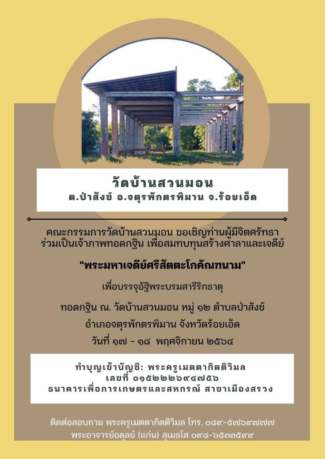 ร่วมเป็นเจ้าภาพทอดกฐิน วัดบ้านสวนมอน จังหวัดร้อยเอ็ด