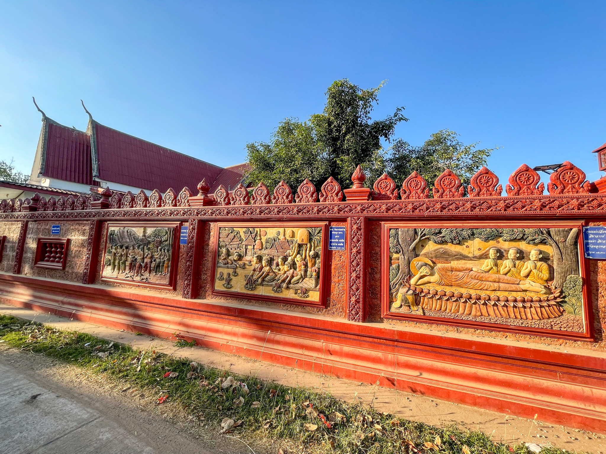 ๒. เขตธรรมมาวาส ประกอบด้วย ศาลาการเปรียญทรงอีสานโบราณ วัสดุไม้มุงสังกระสี สร้างเมื่อปี พ.ศ.๒๔๒๐ ได้รื้อถอนหมดแล้ว และได้สร้างศาลาการเปรียญหลังใหม่ขึ้นทดแทน ๒ หลัง หลังที่หนึ่ง เป็นอาคารทรงไทย วัสดุคอนกรีตเสริมเหล็ก หลังคือมุงกระเบื้อง ประตูหน้าต่างกระจก ปูพื้นกระเบื้อง ขนาดกว้าง ๑๘ เมตร ยาว ๓๒ เมตร หลังที่สอง เป็นอาคารทรงไทยประยุค วัสดุคอนกรีตเสริมเหล็ก หลังคามุงสันไทย ปูพื้นกระเบื้อง ขนาดกว้าง ๑๖ เมตร ยาว ๒๘ เมตร หอระฆัง ๒ หลัง หลังที่หนึ่งสร้างเมื่อปี พ.ศ.๒๔๒๐ วัสดุไม้ หลังที่สองเป็นทรงไทย วัสดุคอนกรีตเสริมเหล็ก โรงครัว ๑ หลัง โรงเก็บพัสดุครุภัณฑ์ ๑ หลัง