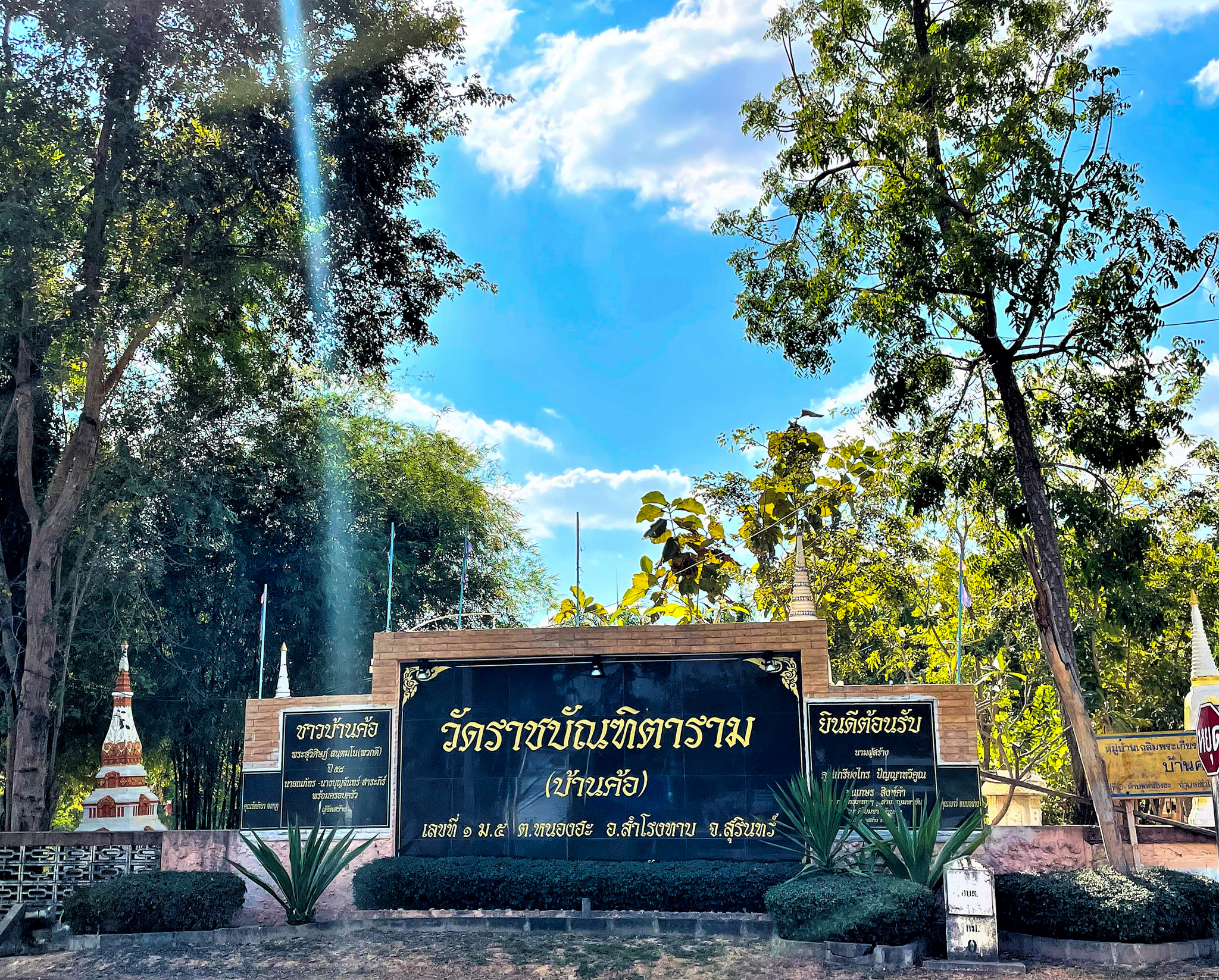 วัดราชบัณฑิตาราม (บ้านค้อ) ตั้งอยู่เลขที่ ๑ บ้านค้อ หมู่ที่ ๕ ตำบลหนองฮะ อำเภอสำโรงทาบ จังหวัดสุรินทร์ สังกัดคณะสงฆ์มหานิกาย ที่ดินตั้งวัดมีเนื้อที่ ๕ ไร่ ๓๐ ตารางวา โฉนดที่ดิน เลขที่ ๖๒๐๕ ตั้งเมื่อ พ.ศ. ๒๔๑๐ เดิมมีชื่อว่า วัดราชศิริลำดวนได้เปลี่ยนชื่อเป็นวัดวัดราชบัณฑิตาราม เมื่อ พ.ศ. ๒๔๘๖