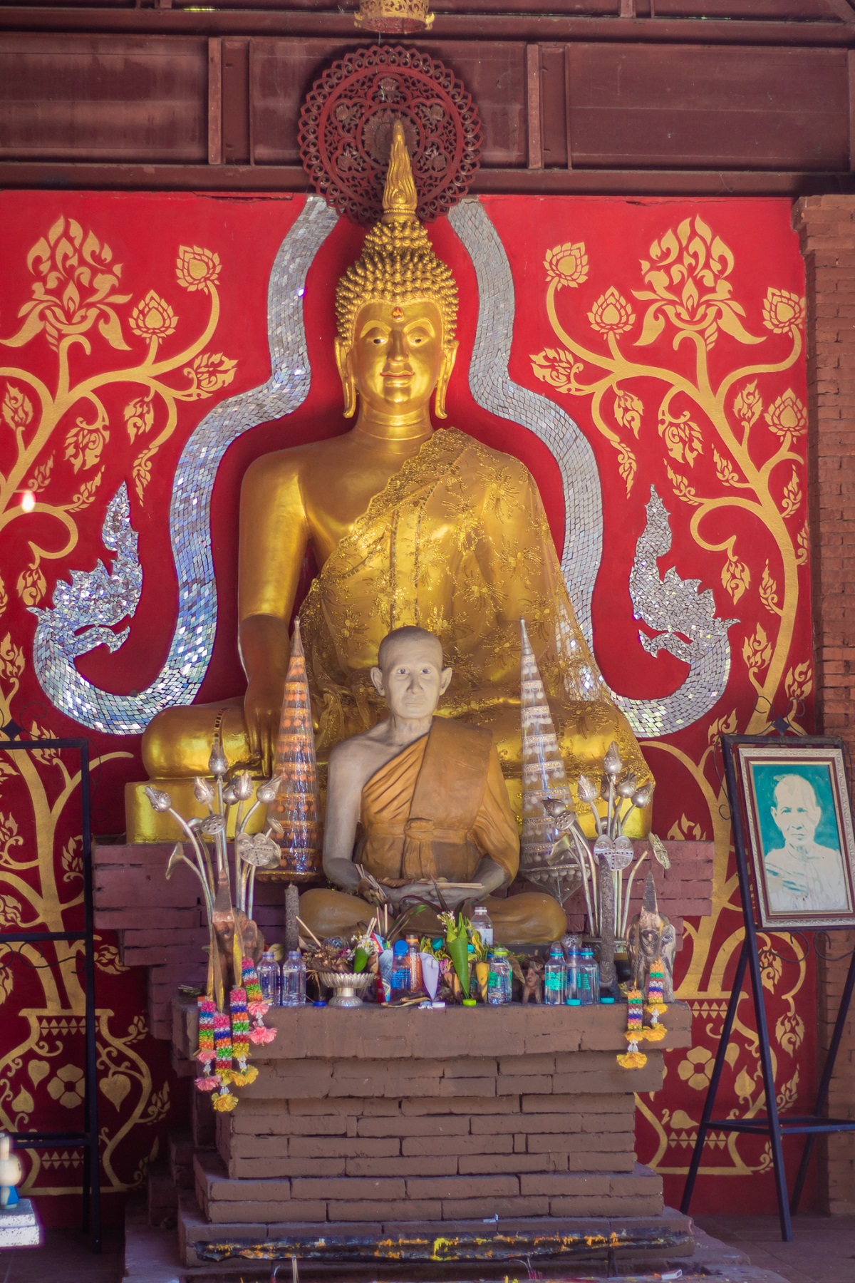 ปูชนียวัตถุ พระประธานเป็นพระพุทธรูปหล่อทองเหลือง และพระพุทธรูปก่ออิฐถือปูน