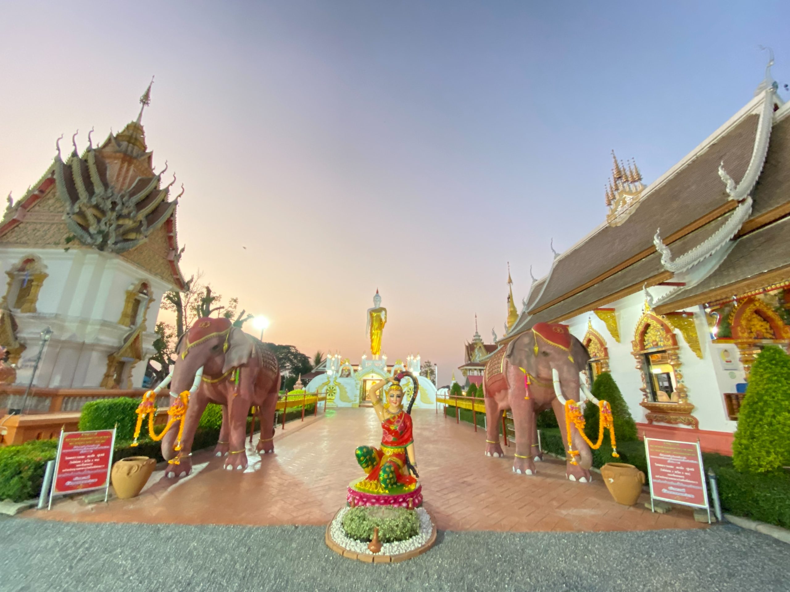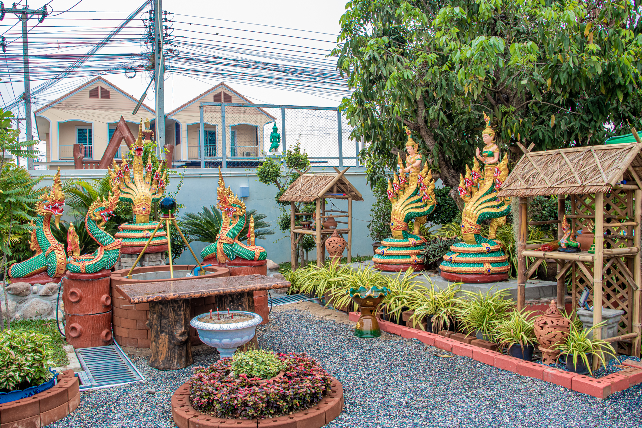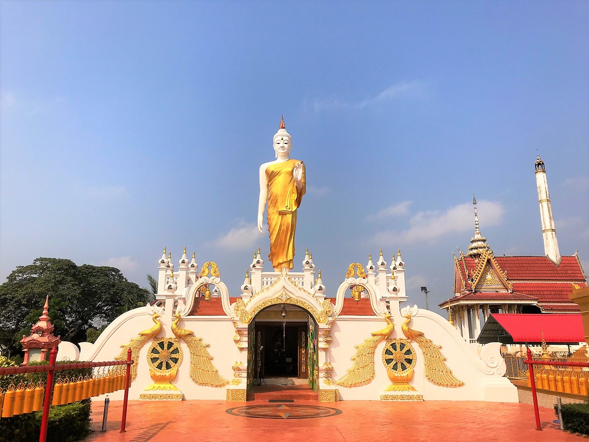 เมื่อเข้ามาถึงบริเวณวัด ท่านจะได้พบกับองค์พระพุทธรูปปางลีลา สูงรวมฐานร่วม ๑๔ เมตร ตั้งตระหง่านอยู่ใจกลางของวัด ซึ่งพระพุทธรูปองค์นี้ มีนามว่า พระพุทธเมตตาบารมี ๑๗๐ ปี อนุสรณ์ (หลวงพ่อใหญ่เมตตาประทานพร)