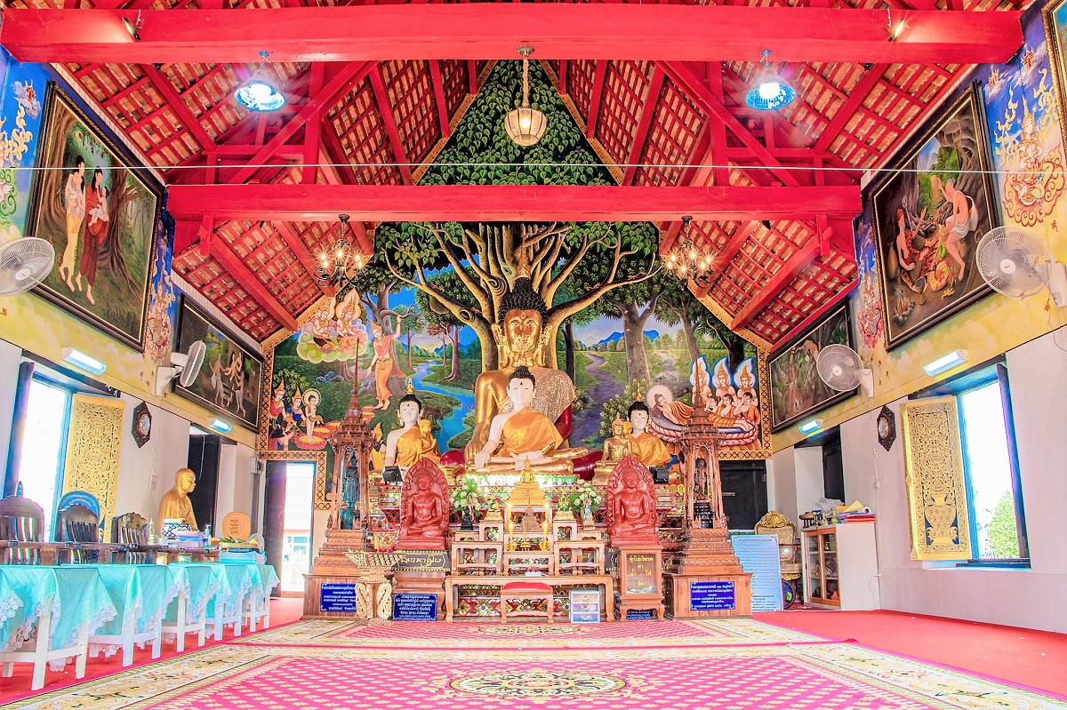 อุโบสถ ของวัดยังมีพระพุทธรูปอีหลายองค์ให้กราบขอพร ทั้งพระประธานในพระอุโบสถ เป็นศิลปะล้านนาร่วมสมัย (สิงห์สาม) มีเอกลักษณ์ ตรงสังฆาฏิประดับกระจกจืนแบบโบราณ และ ยังมีต้นแบบพระพุทธรูปปางลีลาองค์ใหญ่ ที่แกะเป็นต้นแบบจากไม้ละมุดสีดา ซึ่งมีองค์เดียวในโลก และยังได้มีโอกาสกราบพระพุทธรูปหินเขียวอินเดีย นามหลวงพ่อสำเร็จ อีกด้วย ซึ่งลืมไม่ได้เลยว่าศิลปะพุทธศิลปกรรม ในการจัดวางศิลปะ และการสร้างอุโบสถหลังนี้ มีมนต์ขลังแห่งความเป็นล้านนาร่วมสมัย หน้าบันไดทางขึ้นแตกต่างจากวัดอื่นๆ ที่จะมีบันไดนาค อยู่หน้าโบสถ์ แต่วัดหนองปลาขอ ได้สร้างมังคละมัจฉา หรือรูปปั้นปลาขอ ปลาในจินตนาการ ที่เป็นชื่อของวัดในปัจจุบัน ซึ่งก็มีความหมายที่ลึกซึ้งแต่ก็ลงตัวในการจัดวางพุทธศิลปกรรม