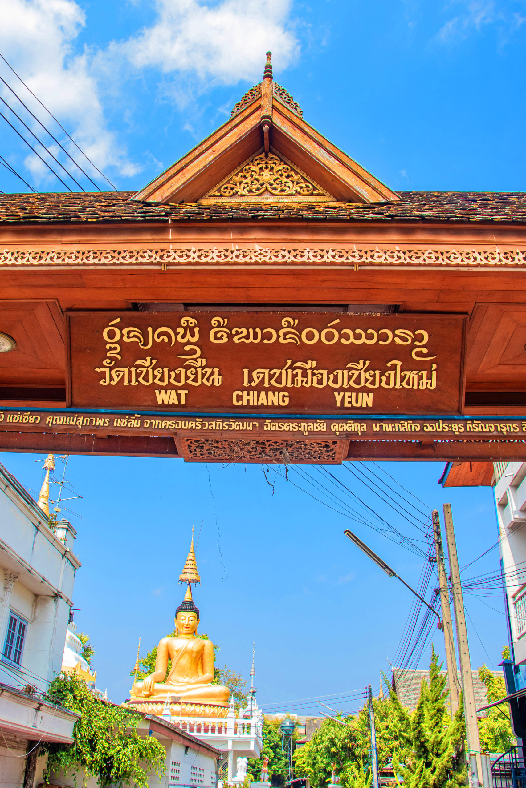 “เชียงยืน” อันหมายถึงความยั่งยืน วัดนี้มีชื่อเรียกในพงศาวดารโยนกว่า วัด “ฑีฆชีวะวัสสาราม” เป็นวัดนามมงคลของนครเชียงใหม่ และเป็นวัดหลวงในสมัยอาณาจักรล้านนา และในอดีตเคยเป็นที่ประทับของพระสังฆราชสังฆนายก ในปัจจุบันผู้ว่าราชการจังหวัดที่มารับตำแหน่งหรือข้าราชการ ประชาชนทั่วไปก็ถือปฏิบัติเป็นประเพณีสืบมา มาในสมัยพระเมืองแก้วได้บรรจุพระบรมธาตุในสถูปเจดีย์ ต่อมาเมืองเชียงใหม่ถูกยึดครอง วัดเชียงยืนกลายเป็นวัดร้าง ครั้นมาสมัยพระยาวิชระปราการ (กาวิละ) ได้ขับไล่พม่าและได้ทำการบูรณปฏิสังขรณ์เมื่อปีพ.ศ.๒๓๓๗