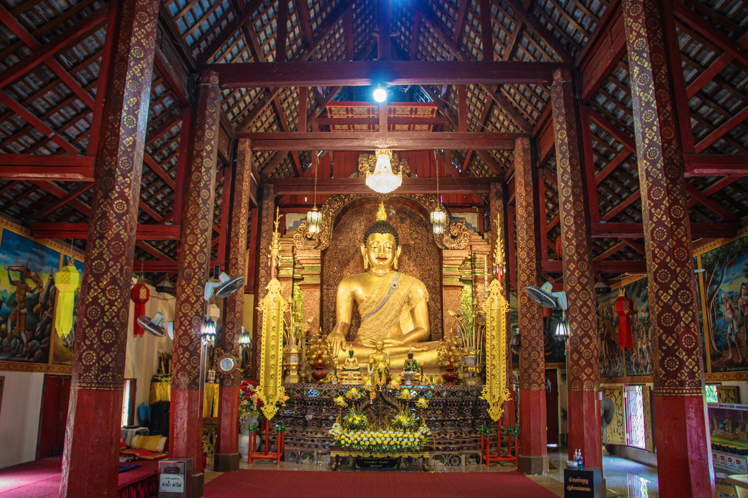พระวิหาร เป็นพระวิหารทรงล้านนา ภายในประดิษฐาน พระประธานปางมารวิชัย นามว่า พระพุทธสัพพัญญู ซึ่งเป็นที่เคารพสักการะ ของเจ้าผู้ครองเมืองและประชาชนมาแต่อดีตจนถึงปัจจุบัน