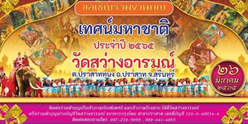 ด้วยวัดสว่างอารมณ์ พร้อมด้วยพุทธศาสนิกชน อุบาสกอุบาสิกา ในเขตบริการของวัด ได้จัดงานบุญเทศน์มหาชาติ ประจำปี ๒๕๖๕ ขึ้น เพื่อเป็นการอนุรักษ์วัฒนธรรมไทย ขนบธรรมเนียมประเพณีอันดีงามของชุมชน อีกทั้งเป็นการอุปถัมภ์บำรุงพระพุทธศาสนา สืบสานวัฒนธรรมให้อนุชนรุ่นหลังได้ศึกษา และนำไปปฏิบัติ ให้เกิดเป็นสิริมงแก่ตนเอง และบุคคลอื่น