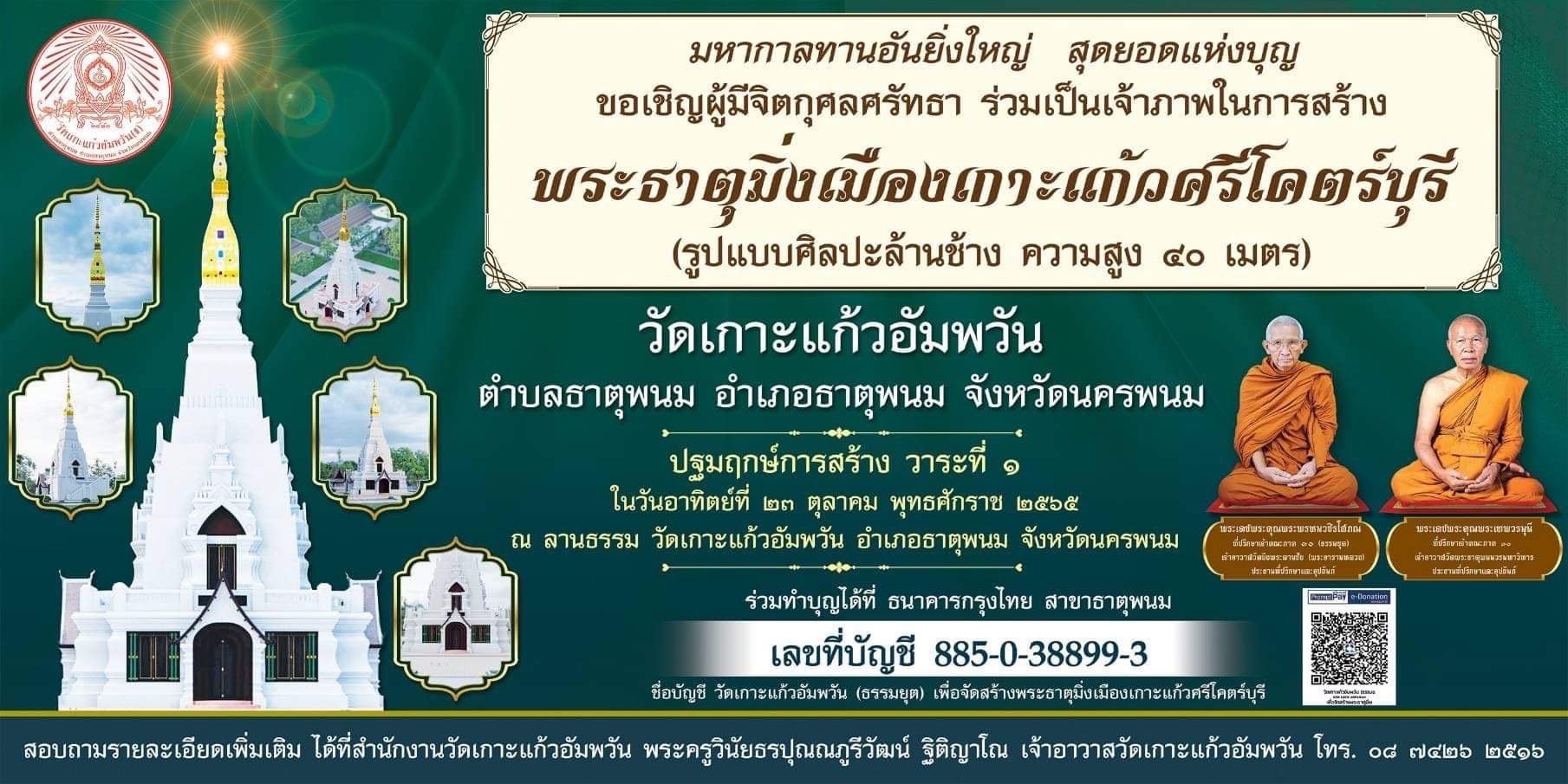 ร่วมทำบุญได้ที่ ธนาคารกรุงไทย สาขาธาตุพนม
