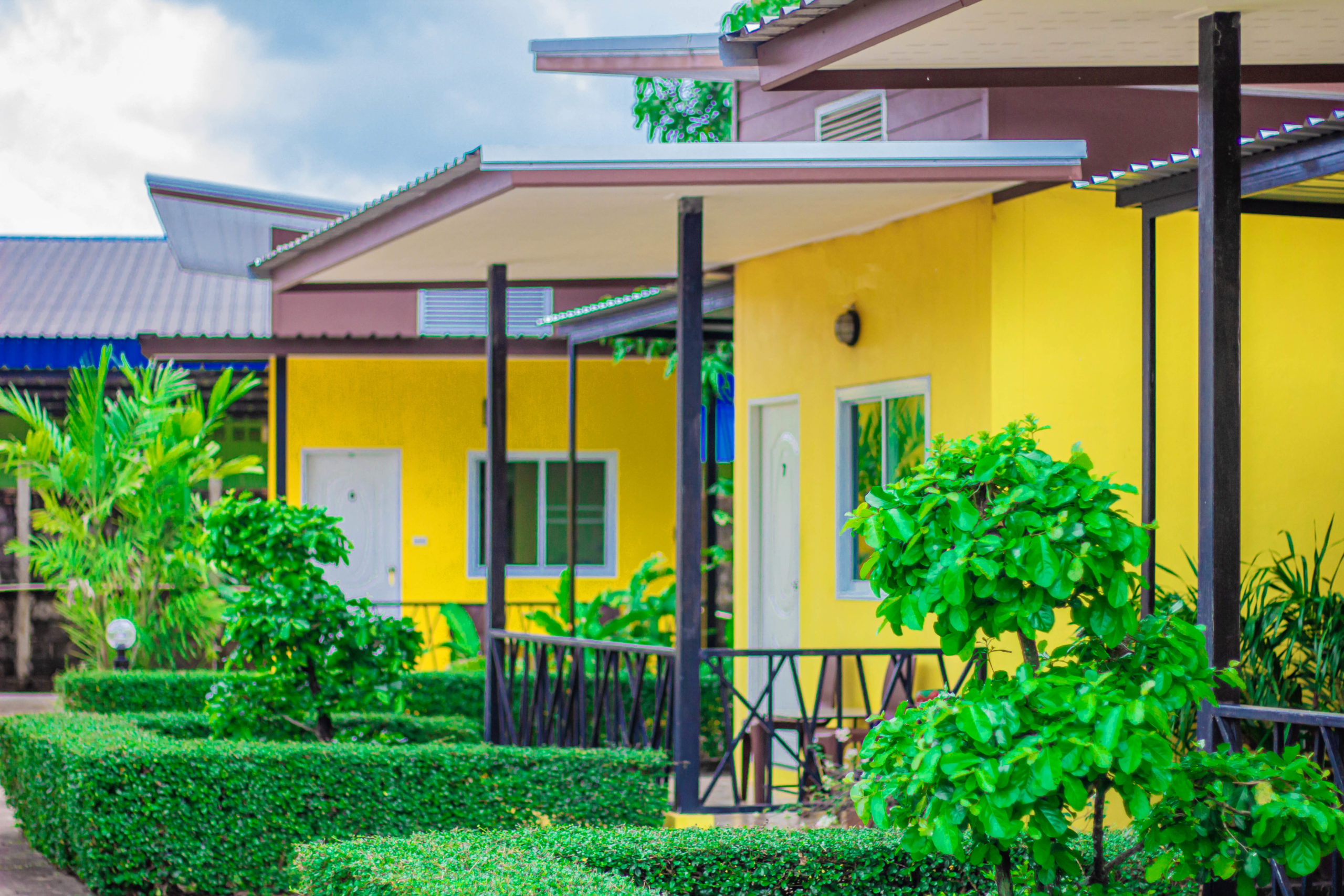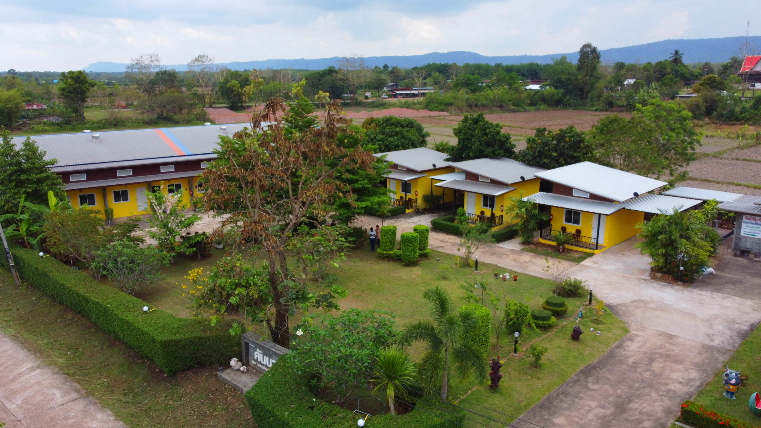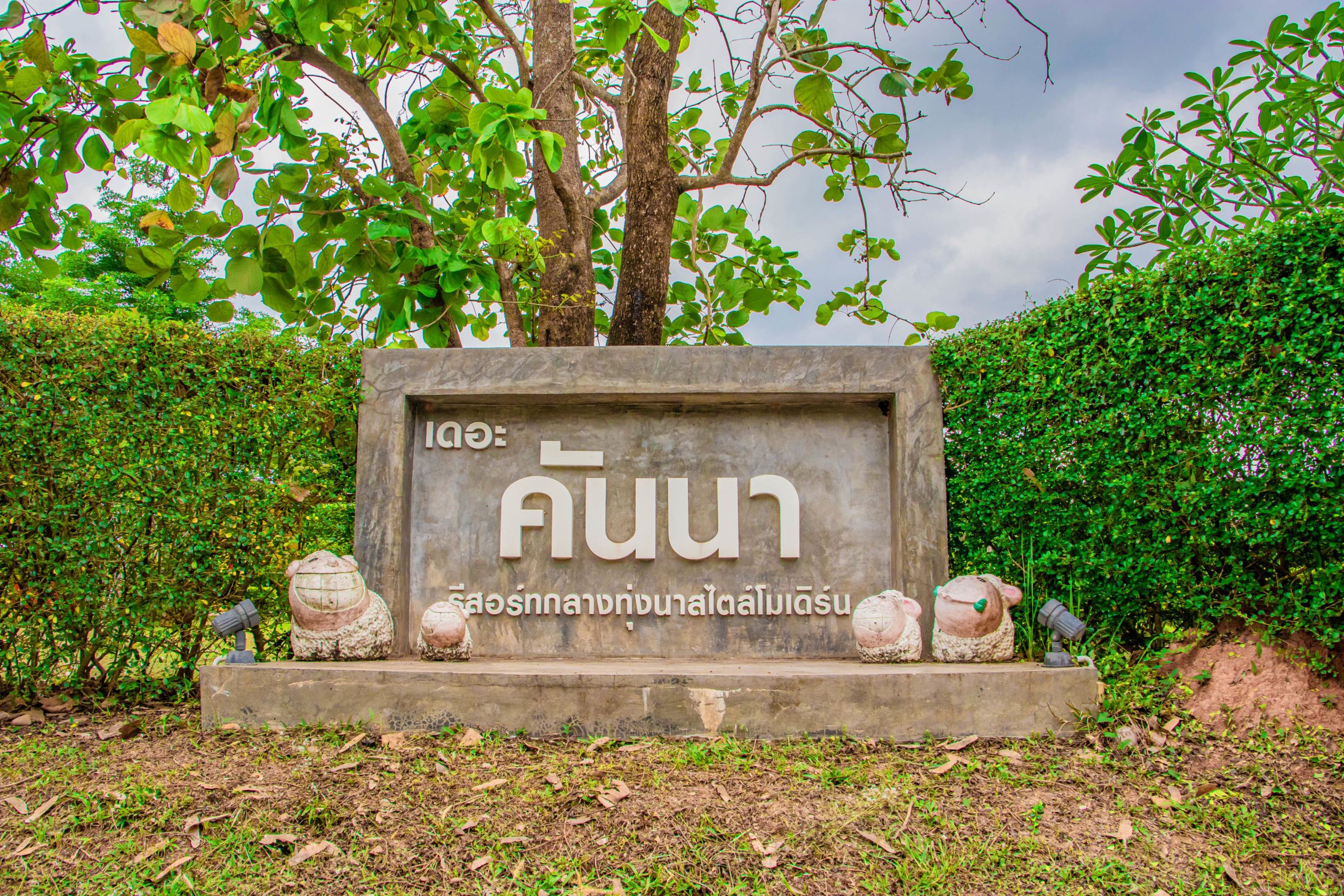 รีสอร์ทสีเหลืองกลางทุ่งนาสไตล์โมเดิร์น