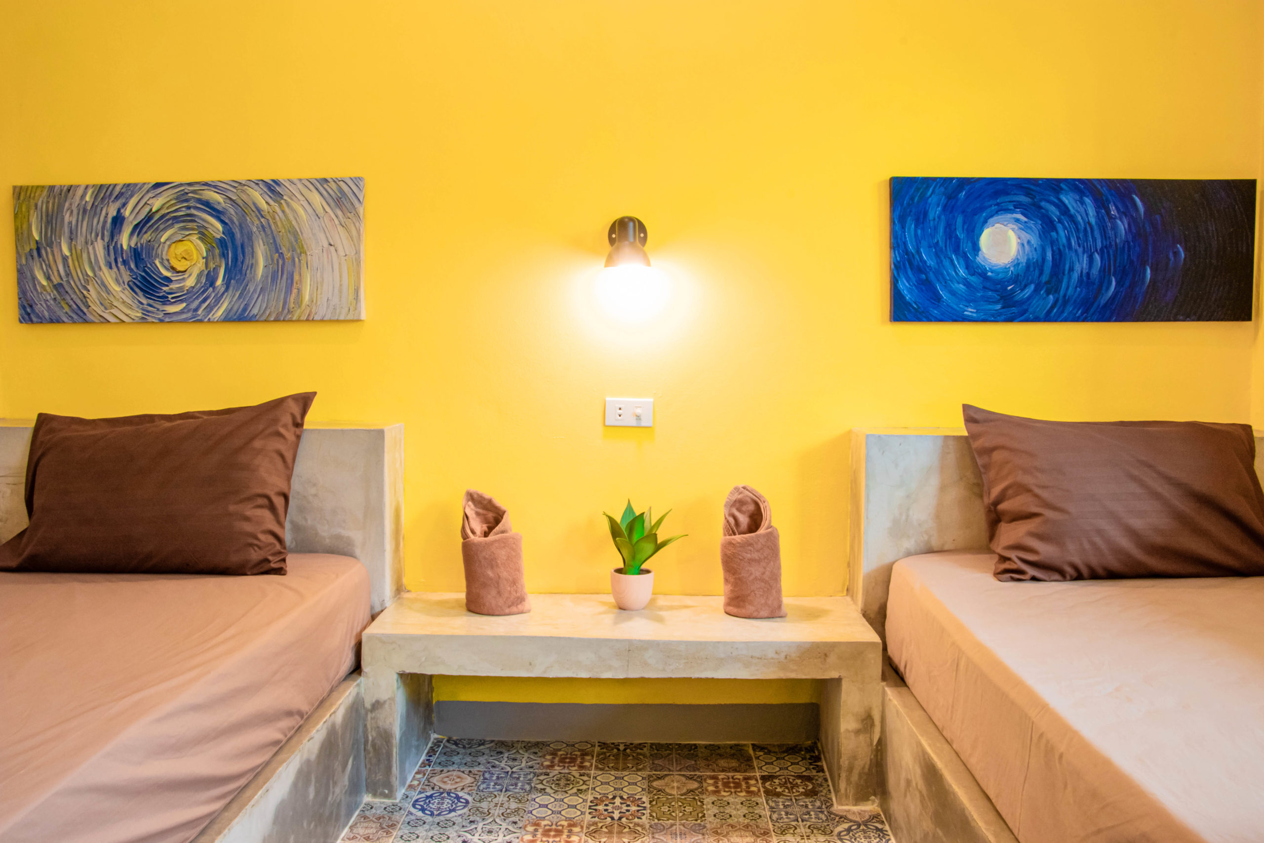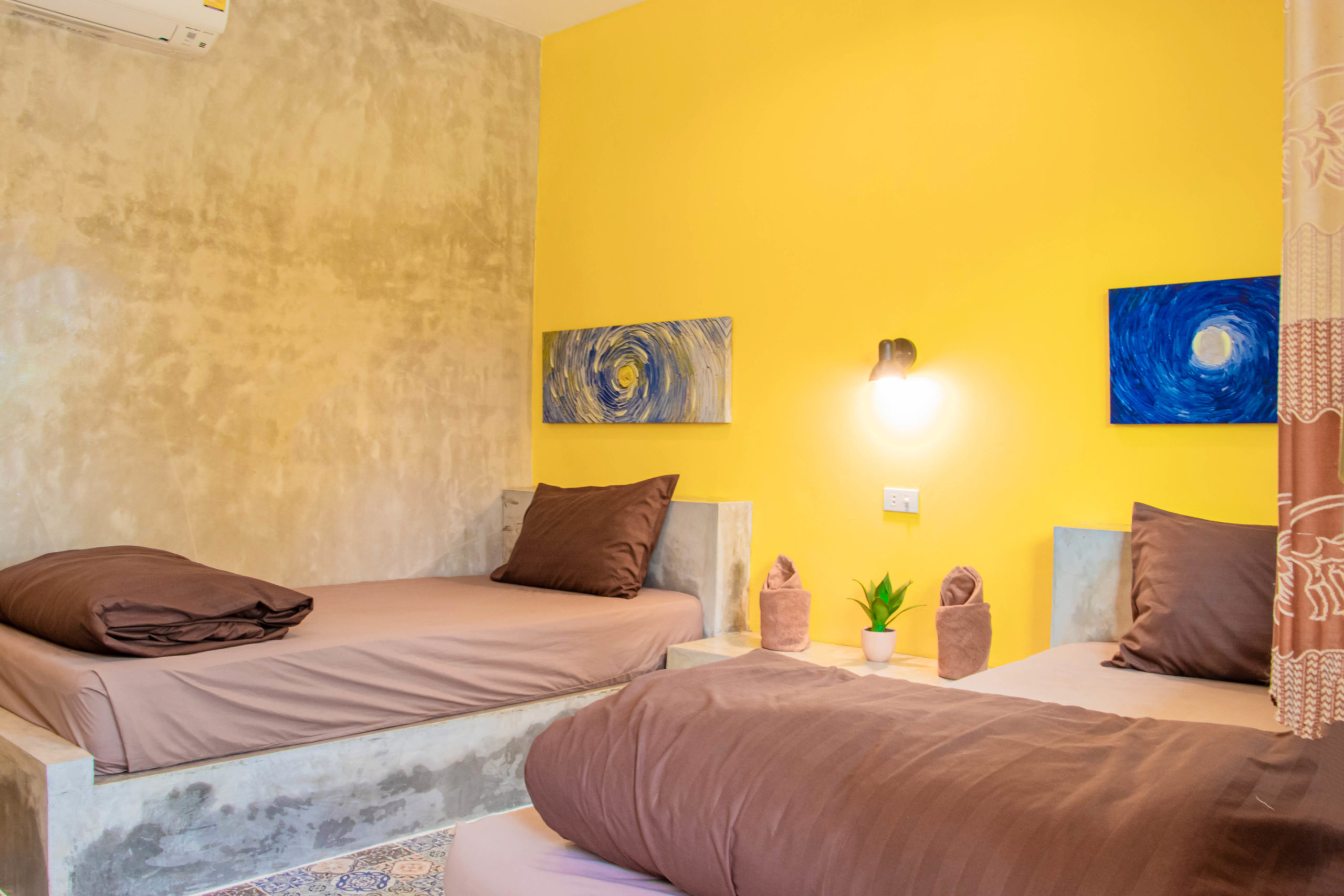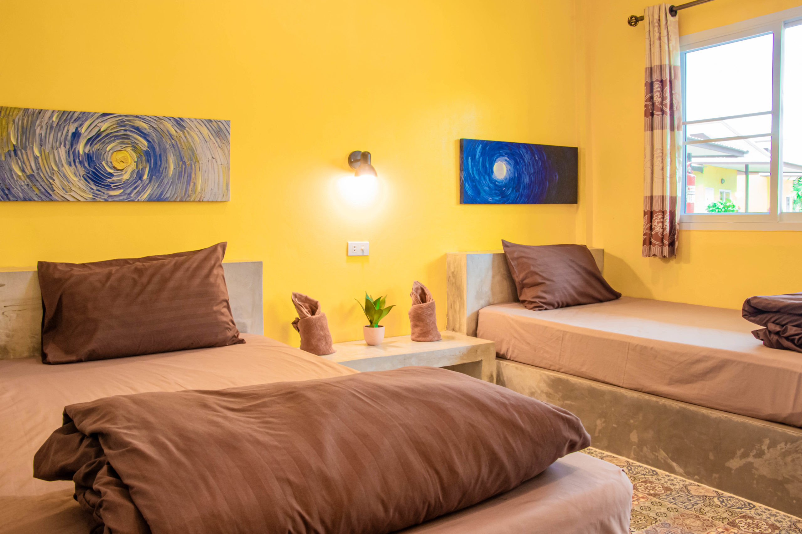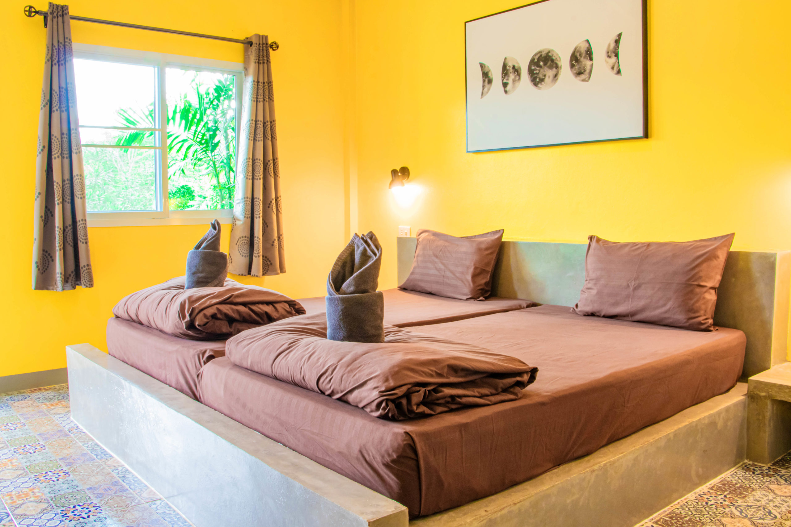 รีสอร์ทสีเหลืองกลางทุ่งนาสไตล์โมเดิร์น