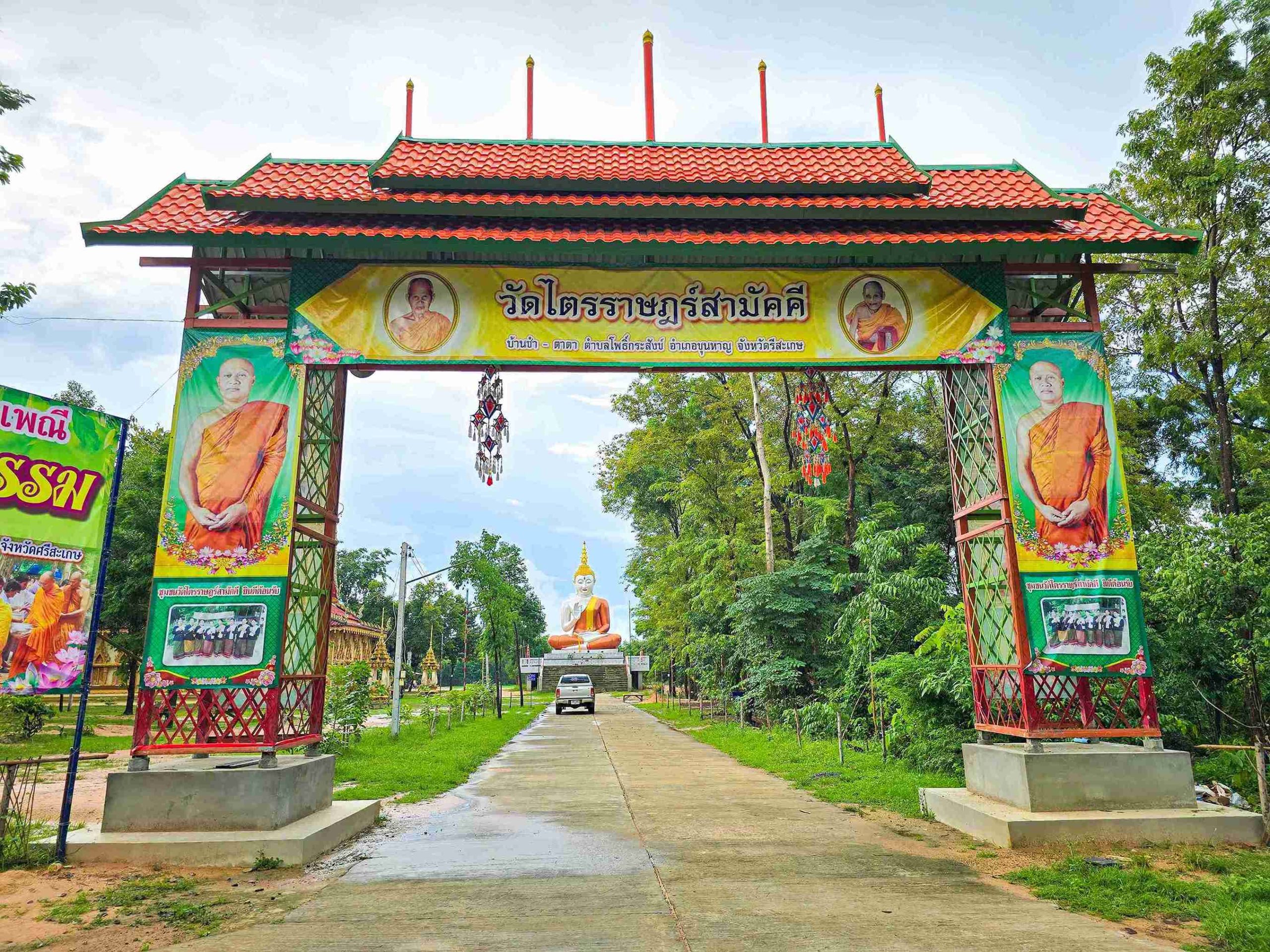 วัดไตรราษฎร์สามัคคี ได้รับอนุญาตสร้างวัดเมื่อวันที่ ๒๙ สิงหาคม พ.ศ. ๒๕๔๒ ได้รับประกาศตั้งวัดเมื่อวันที่ ๑๙ พฤศจิกายน พ.ศ. ๒๕๔๓ ต่อมาได้รับพระราชทาน วิสุงคามสีมาเมื่อวันที่ ๒๘ มิถุนายน พ.ศ.๒๕๔๘ ดำเนินการปักเขตสีมา เมื่อวันที่ ๔ สิงหาคม พ.ศ. ๒๕๔๙ ประธานสงฆ์ พระครูกมลพัฒนาทร เจ้าคณะอำเภอขุนหาญ ประธานฆารวาส ปลัดอำเภอขุนหาญ ผูกพัทธสีมา วันที่ ๑๙ เมษายน พ.ศ. ๒๕๕๐