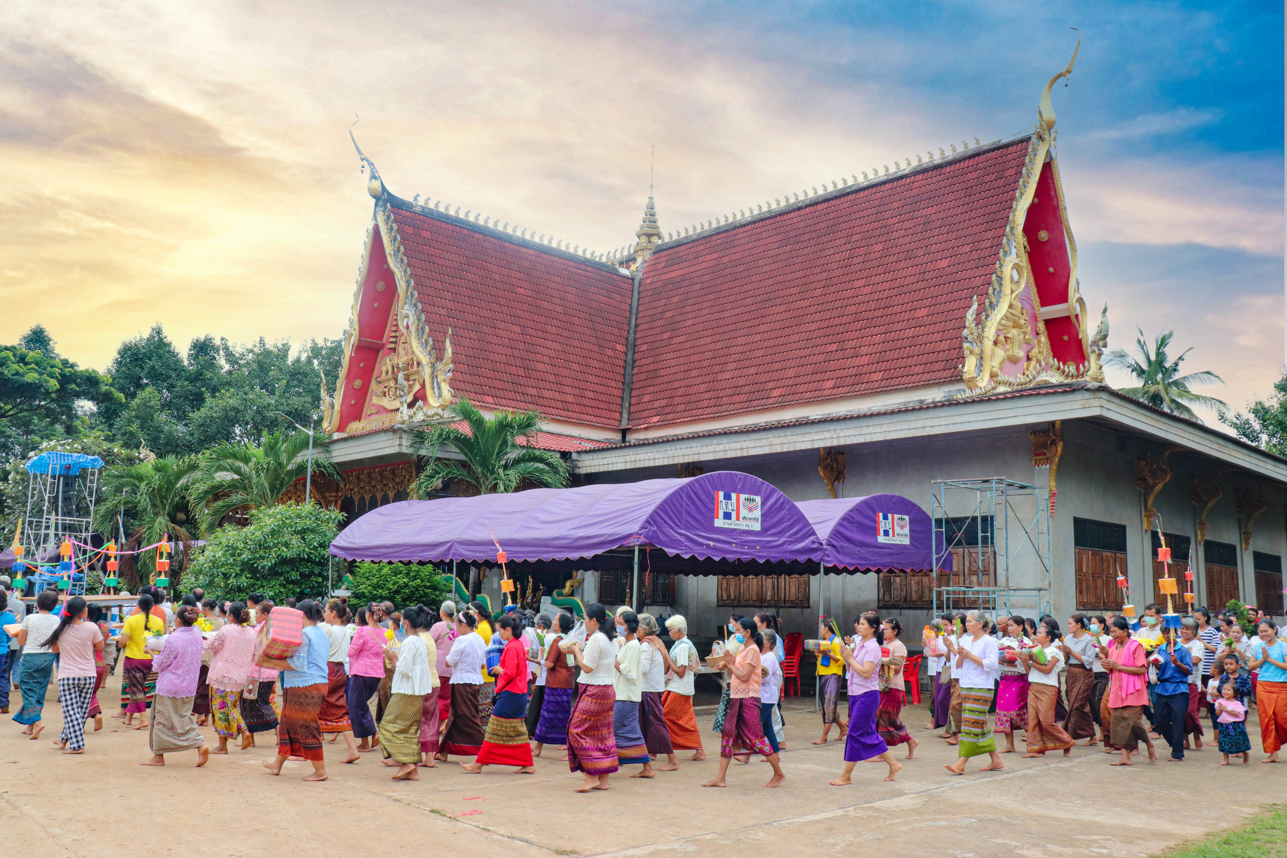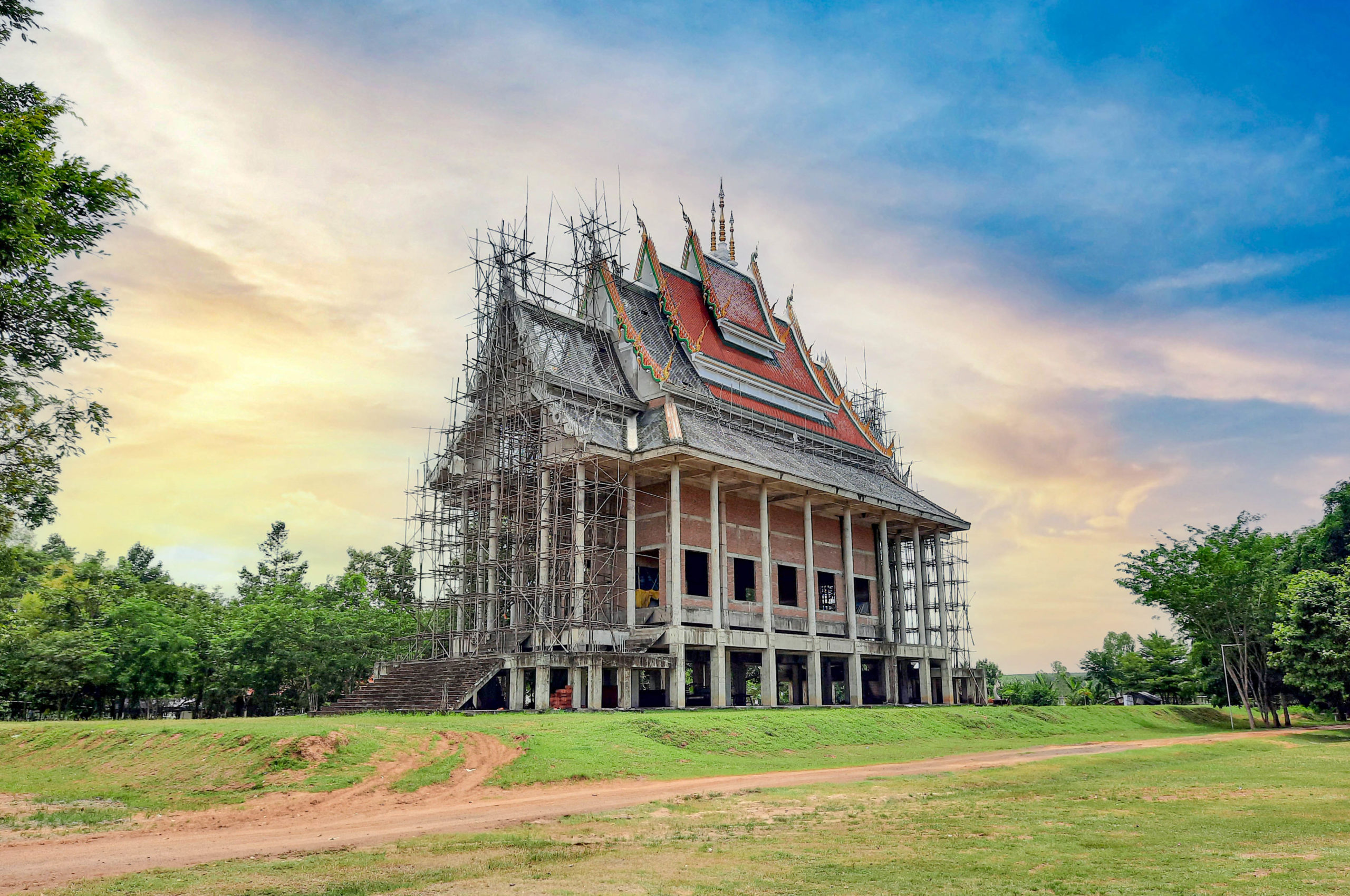 กำลังดำเนินการมุงหลังคาอุโบสถ ติดตั้งใบระกา ทาสี