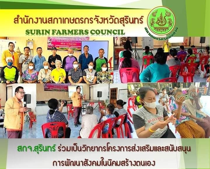 วันที่ 30-31 สิงหาคม 2565 นายธงชัย พูดเพราะ หัวหน้าสำนักงานสภาเกษตรกรจังหวัดสุรินทร์ ร่วมเป็นวิทยากรโครงการส่งเสริมและสนับสนุนการพัฒนาสังคมในนิคมสร้างตนเอง (ชับเคลื่อนการสร้างมูลค่าทางเศรษฐกิจในนิคมสร้างตนเอง) กิจกรรมทบทวนผลงานและถอดบทเยนโครงการติดตามประเมินผลและขยายผลต่อยอดเป็นงบประมาณ พ.ศ. 2565 ณ ห้องประชุมนิคมสร้างตนเองปราสาท จังหวัดสุรินทร์ ซึ่งมีการบรรยายการจัดการตลาด และการวางแผนการผลิตตามฤดูกาล แนวทางการสร้างเครื่ออข่ายการตลาด ทั้งนี้ได้มีการแบ่งกลุ่ม และอภิปรายทบทวนผลการดำเนินงานโครงการประเมินความพึงพอใจต่อการดำเนินงานที่ผ่านมาและสรุปผลกิจกรรมทบทวนผลงานและถอดบทเรียนโครงการประเมินผลและขยายต่อยอดและแผนการดำเนินงาน เพื่อเสริมสร้างและพัฒนาคุณภาพชีวิตและความเป็นอยู่ของสมาชิกนิคมสร้างตนเองปราสาท จังหวัดสุรินทร์ โดยการปลูกพืชระยะสั้น การแปรรูป รวมถึงการพัฒนาผลิตภัณฑ์ทางการเกษตรท้องถิ่นเพื่อจำหน่าย และเพื่อเพิ่มมูลค่าผลผลิตแปรรูปพืชระยะสั้นต่อไป