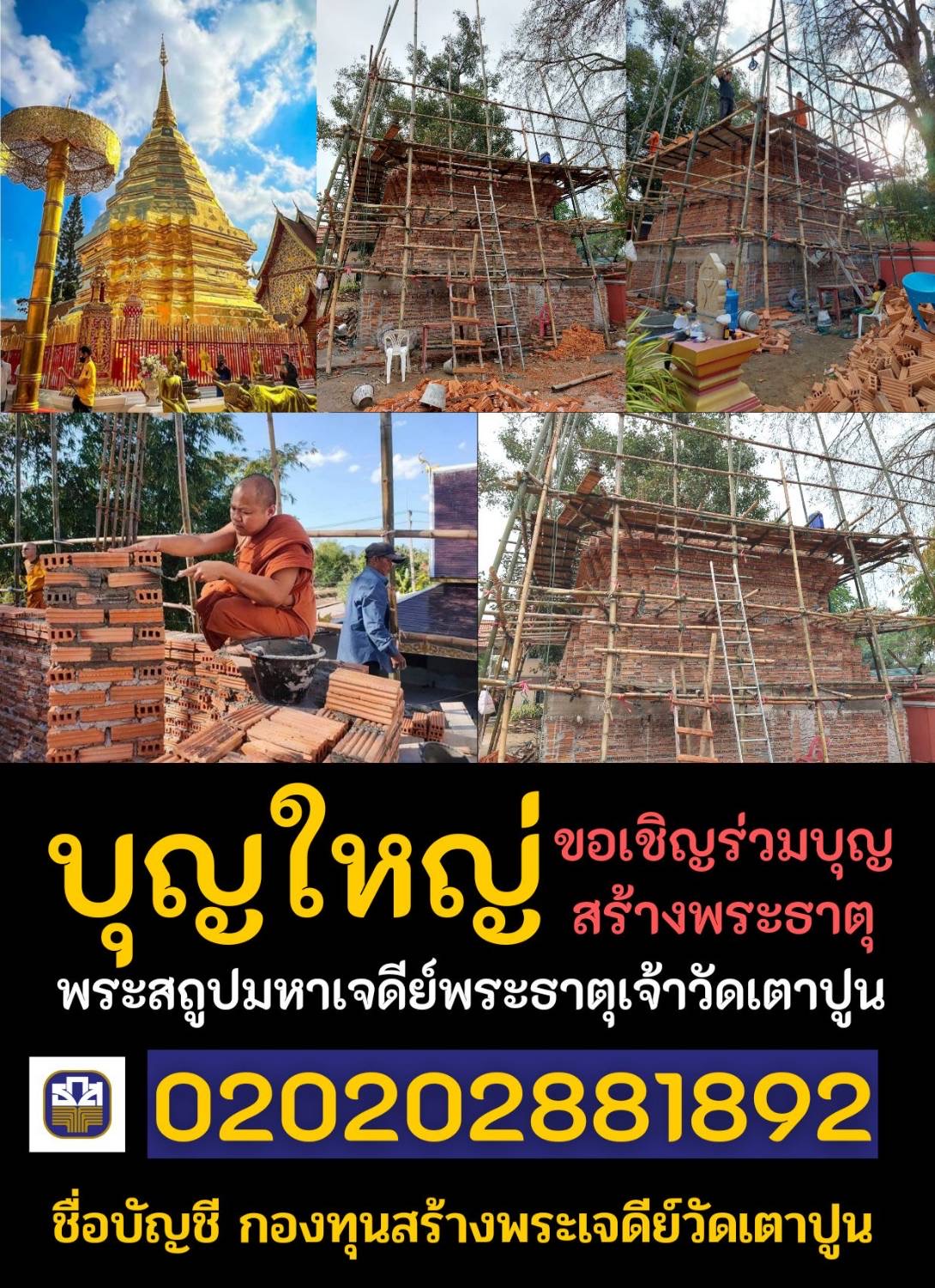 ชื่อบัญชีกองทุนสร้างพระเจดีย์วัดเตาปูน