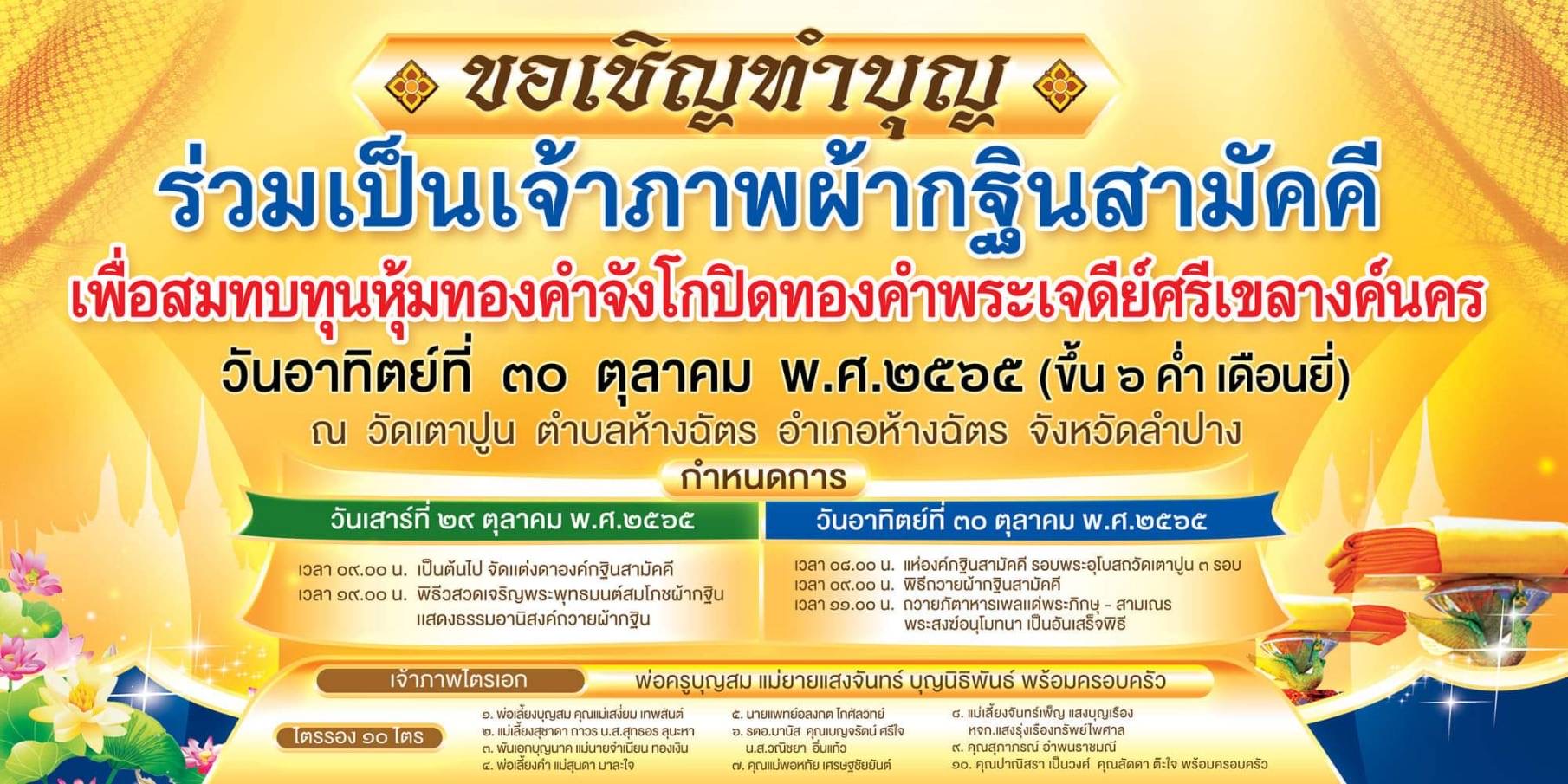 ขอเชิญทำบุญร่วมเป็นเจ้าภาพผ้ากฐินสามัคคี