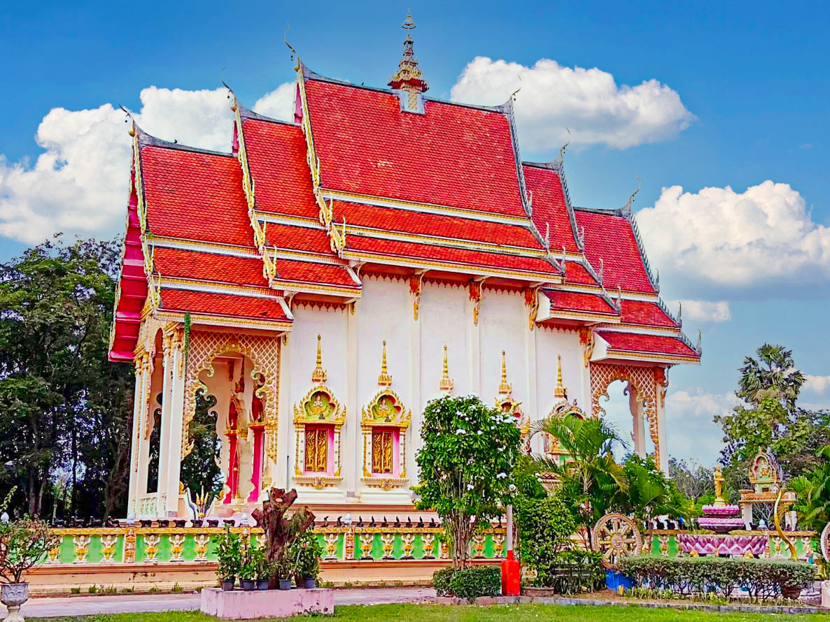 ๒. ศาลาการเปรียญ ลักษณะทรงจั่ว เดิมขนาดกว้าง ๑๒เมตร ยาว ๒0 เมตร โดยการขยายพื้นที่ศาลาเป็นขนาดกว้าง ๒๐ เมตร ยาว ๒๘ เมตร ก่ออิฐถือปูน พื้นปูด้วยกระเบื้อง ลักษณะทรงจั่ว ขนาดกว้าง ๖ เมตร ยาว ๘ เมตร เสาทำด้วยไม้เนื้อแข็ง ก่ออิฐถือปูนด้านหลังสูง ๑.๕0 เมตร พื้นปูด้วยกระเบื้อง โครงหลังคาเหล็ก มุงด้วยสันไท
