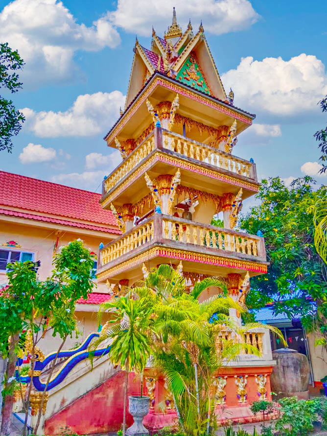๕. หอระฆัง ลักษณะทรงจตุรมุขสามชั้น ขนาดกว้าง ๔ เมตร ยาว เมตร โครงสร้างคอนกรีตเสริมเหล็ก ก่อเอวขันธ์สูง ๑.๕๐ เมตร บันไดคอนกรีตเสริมเหล็ก
