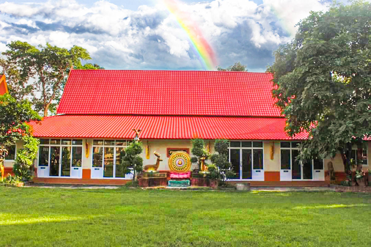 ๗. หอฉัน ลักษณะทรงจั่ว ขนาดกว้าง ๑๒ เมตร ยาว ๒๓เมตร โครงสร้างคอนกรีตเสริมเหล็ก ก่ออิฐถือปูน พื้นปูด้วยกระเบื้อง