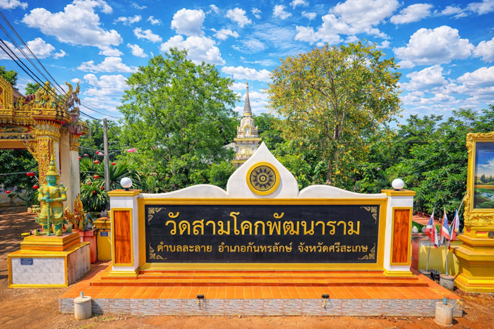 วัดสามโคกพัฒนาราม ตั้งอยู่ที่บ้านโคกพัฒนา เลขที่ ๑๐๙ หมู่ที่ ๑๒ ตำบลละลาย อำเภอกันทรลักษ์ จังหวัดศรีสะเกษ