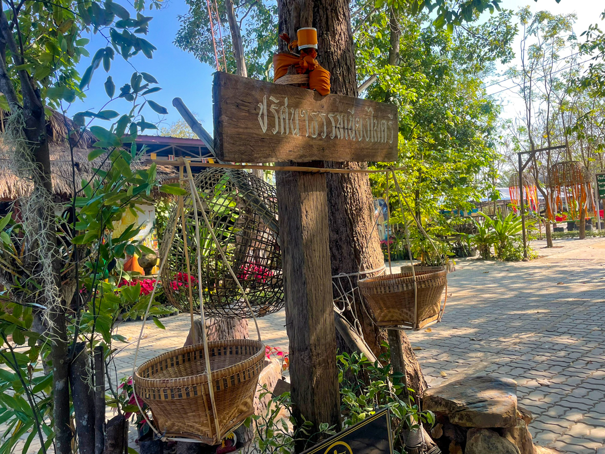 แล้วร่วมกันกราบไหว้ถ่ายภาพ กับอิริยาบถวิถีชีวิต โพลวพลือ (ทางสว่าง) ของหลวงปู่สรวงที่จัดแสดงเพื่อสื่อปฏิปทาของท่านได้อย่างใกล้ชิด เช่น จุดที่หลวงปู่นั่งผิงไฟ จุดบากเสาผูกเปล จุดถ่ายภาพกับสานุศิษย์ลายมือหลวงปู่ที่รวบรวมมาแต่ละพื้นที่ แล้วเวียนขวาไปจบ ณ จุดแรกที่จุดเทียน หลังการเขียนสมุดเยี่ยมชมและเขียนใบโพธิ์ขอพร อธิษฐานธรรมติดชายจีวรห้อยลงรอบเทียนชัยแล้วให้ตัวแทนดับเทียนชัยด้วยใบโพธิ์ เพราะเทียนชัยมีปริศนาธรรม เหตุผลตามคำอธิบายว่า สิ่งทั้งปวงมีเกิดขึ้น ตั้งอยู่ ดับไป ประดุจเทียนชัย ผู้ให้เห็นแจ้งชัยก็เข้าถึงความดับกิเลสสนิทไม่มีส่วนเหลือได้ ดับเทียนชัย หมายถึง ดับกิเลสเข้าสู่พระนิพพาน ทุกกิจกรรมจะมีการเรียนรู้และอธิบายสร้างความเข้าใจให้ทุกอย่างรอบตัวเป็นสื่อประดิษฐ์ปริศนาธรรมทั้งหมด