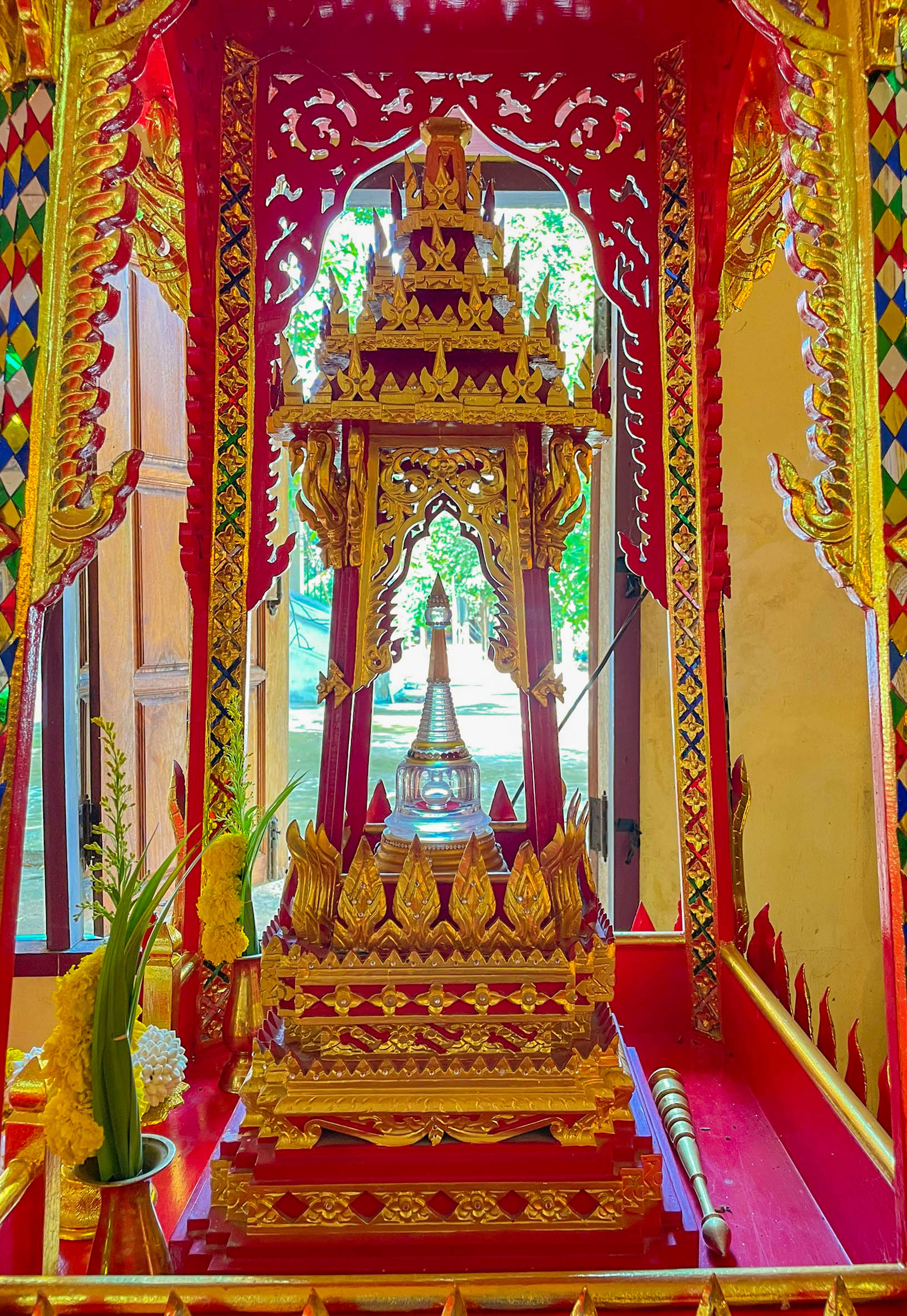 - พระบรมสารีริกธาตุ (ได้รับจากสมเด็จพระพุฒาจารย์(เกี่ยว อุปเสโน) อดีตเจ้าคณะใหญ่หนตะวันออก วัดสระเกษราชวรมหาวิหาร) ประดิษฐานบนบุษบกปิดทองประดับกระจก ภายในศาลาการเปรียญ