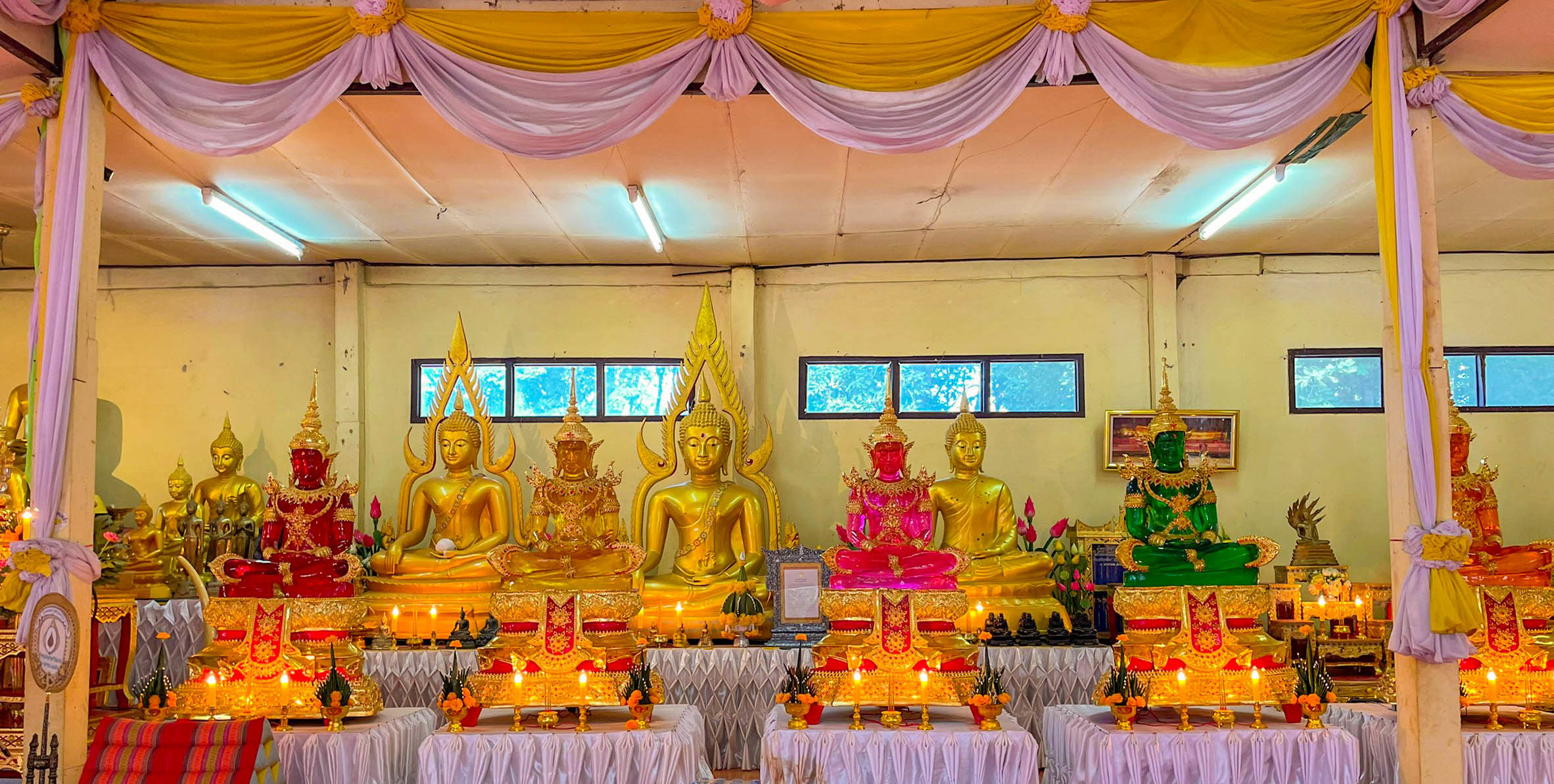 - พระประธานประจำอุโบสถ ปางมารวิชัย(หลวงพ่อพระหยก) ขนาดหน้าตัก กว้าง ๖๙ นิ้ว สูง ๙๔ นิ้ว สร้างเมื่อ พ.ศ. ๒๕๕๙