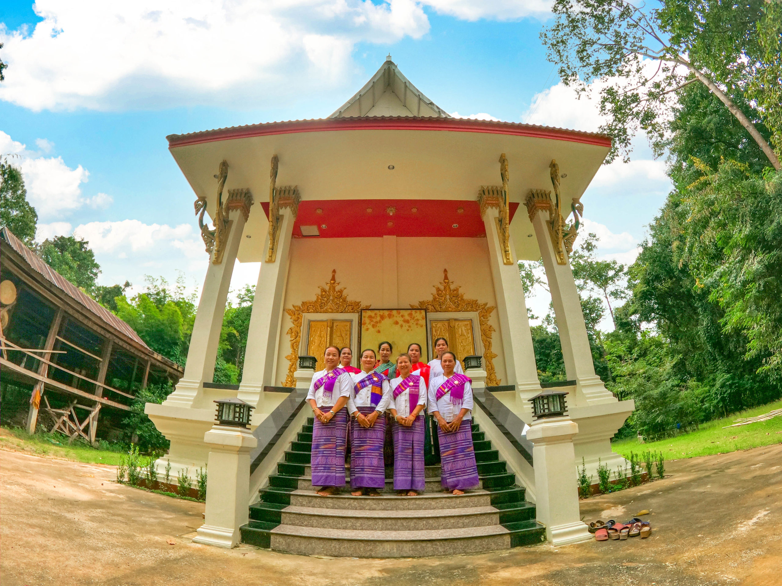 - ศาลาหอฉัน กว้าง ๑๖ เมตร ยาว ๒๐ เมตร สร้างเมื่อ พ.ศ. ๒๕๑๕ รูปแบบอิสานโบราณ