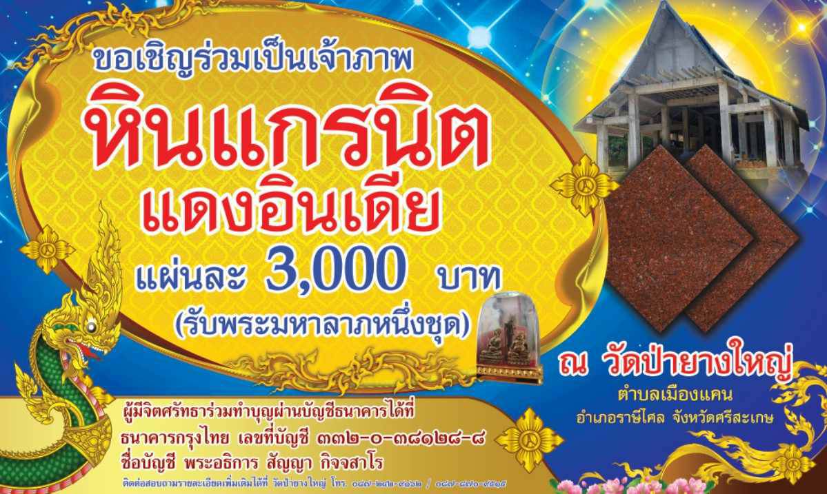 ติดต่อสอบถามรายละเอียดเพิ่มเติมได้ที่ วัดป่ายางใหญ่ โทร 087-242-9162 / 087-870-9515