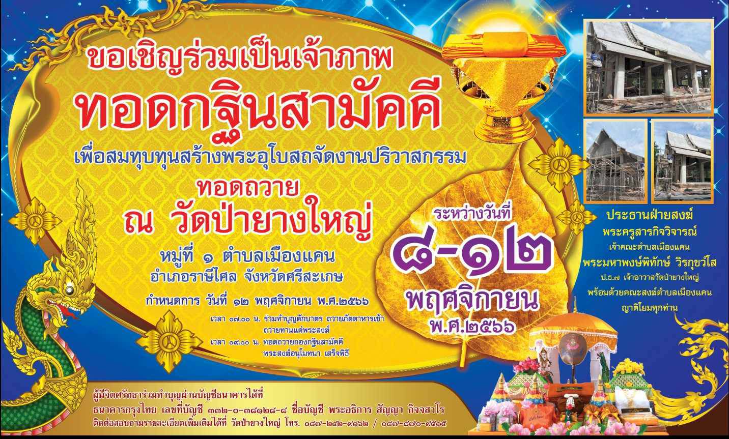 ขอเชิญร่วมเป็นเจ้าภาพทอดกฐินสามัคคี