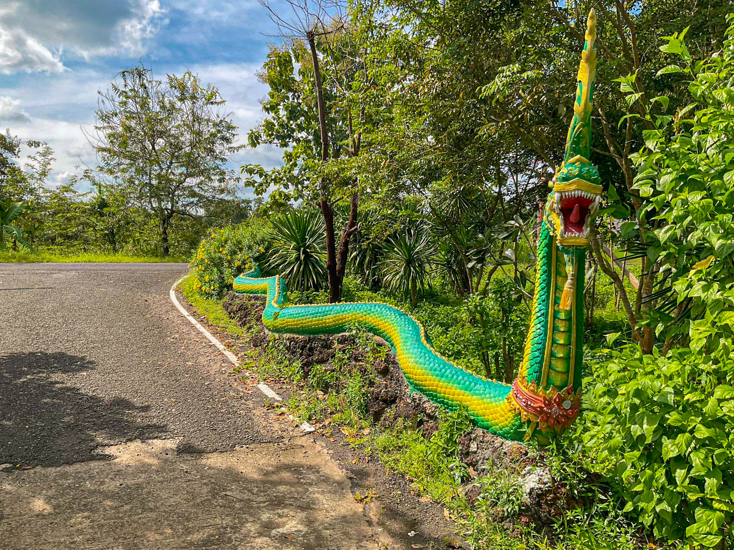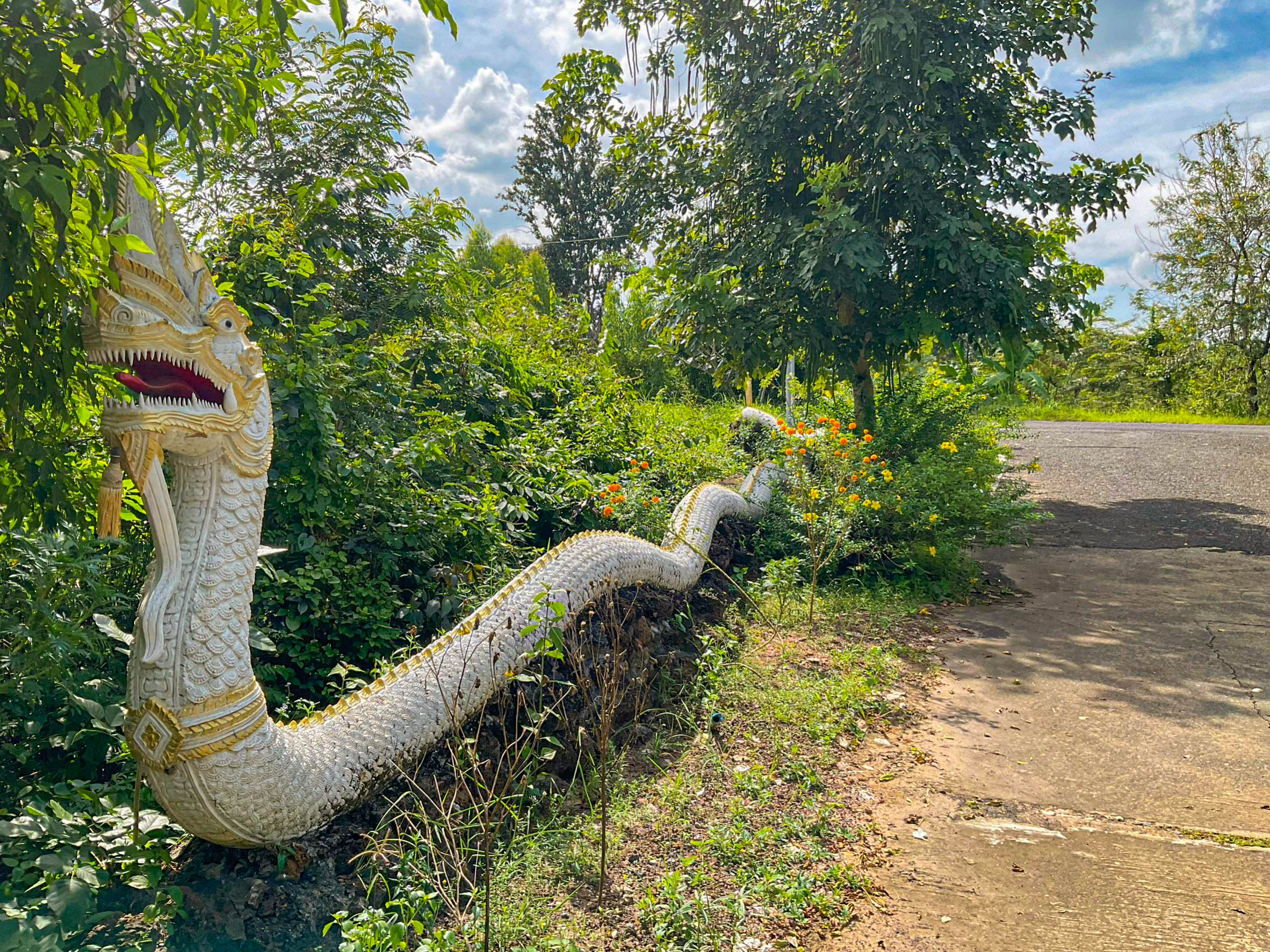 หลวงพ่อบุญเสริมกลับมาจากการไปกราบคารวะพระเถระผู้ใหญ่ที่ภาคเหนือ ก็มาทบทวนว่าจะสร้างโบสถ์หรือไม่อย่างไรดี จริงหรือที่คนผู้นั้นบอกว่าจะมีคนช่วยสร้างในขณะที่คิดลังเลสงสัยอยู่นั้นก็มีเด็กวัดคนหนึ่งวิ่งหน้าตาตื่นเข้ามาในกุฏิ บอกหลวงพ่อว่า “หลวงพ่อ ๆ งูเผือกตัวหนึ่งนอนอยู่หน้ากุฏิครับ” หลวงพ่อรีบออกไปดูและบอกว่าอาจจะเป็นพญานาคมาบอกให้สร้างโบสถ์ ท่านก็เลยพูดไปว่า “ไป ออกไปอยู่ที่เดิม จะสร้างโบสถ์ให้อยู่หรอก” แล้วงูเผือกตัวนั้นก็เลื้อยเข้าพงหญ้าใต้ต้นเปือยหายไป จากนั้นหลวงพ่อได้ติดต่อช่างปั้นพญานาคหันหัวเข้าวัด ขณะที่ช่างกำลังปั้นพญานาคอยู่นั้นก็มีคนขับรถไถนาคันใหญ่ขับผ่านมาและทักท้วงว่า “เว้ย ๆ ช่างผีบ้าบ่อมีวัดได๋ดอกเขาปั้นพญานาคหันหัวเข้าวัด” พอพูดจบปรากฎว่ารถที่ขับมาถลาลงข้างถนน โชคดีที่ไม่ตกถนน คนขับถึงกับอกสั่นขวัญเสีย และนอกจากนี้ยังถือว่าเป็นครั้งแรกของวัดที่มีคนมาขอบวชมากที่สุดจำนวน ๒๕ คน ทั้ง ๆ ที่เป็นช่วงออกพรรษา ถือว่าท่านเหล่านั้นเป็นบริวารของหลวงพ่อที่จะมาร่วมสร้างโบสถ์ ตามที่คนขายเครื่องมือแพทย์แนะนำหลวงพ่อเมื่อครั้งที่ไปภาคเหนือ