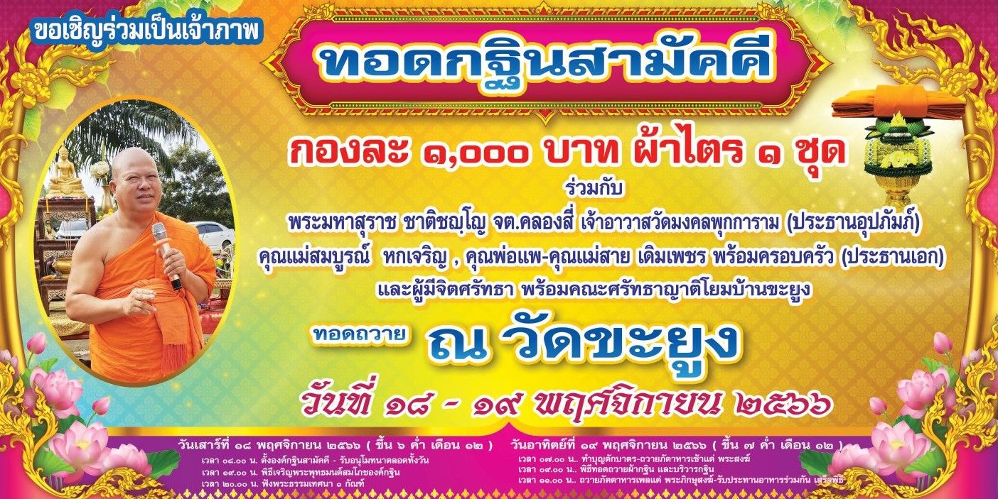 เวลา ๐๘.๐๐ น. ตั้งองค์กฐินสามัคคี – รับอนุโมทนาตลอดทั้งวัน