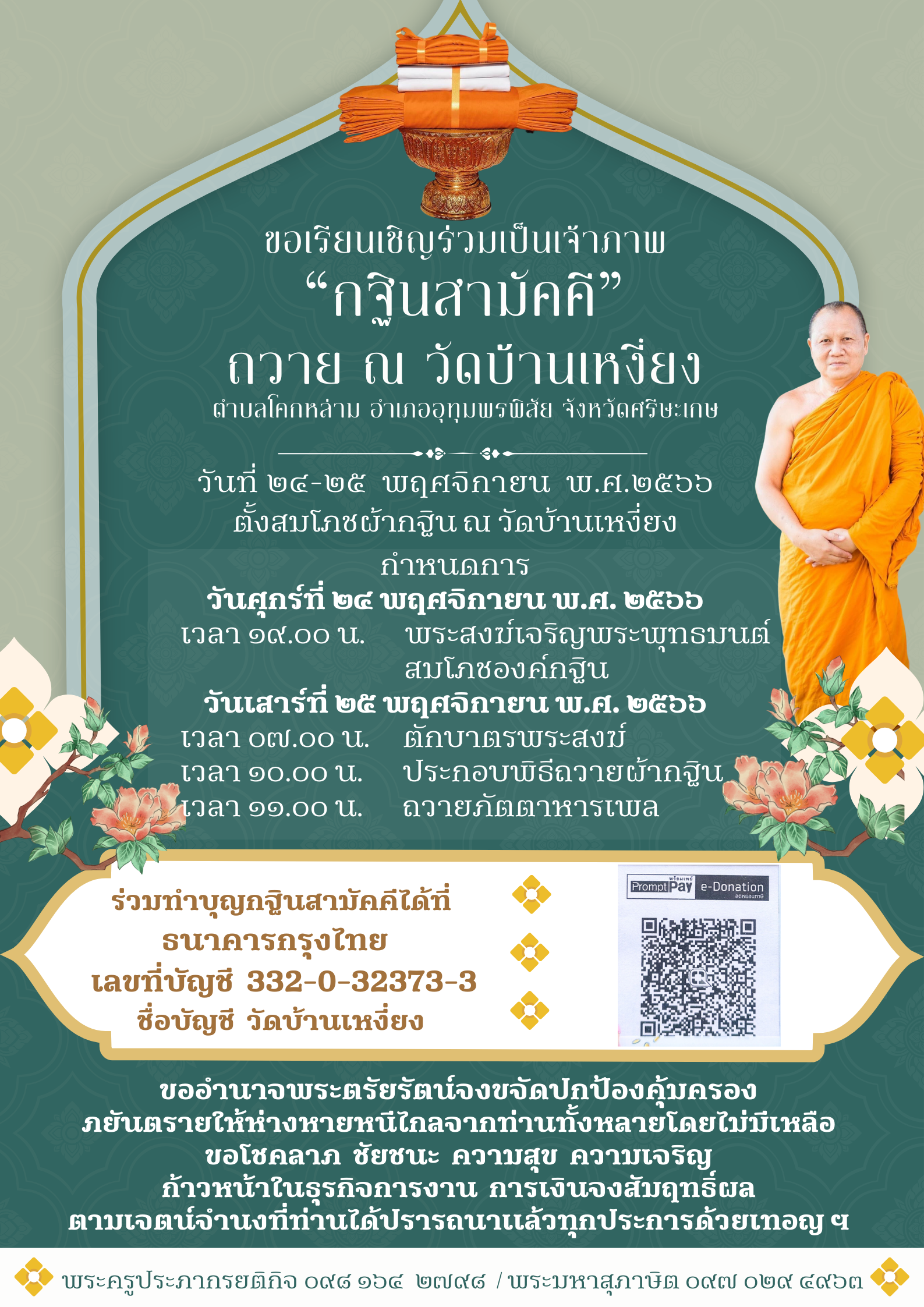 ร่วมทำบุญกฐินสามัคคีได้ที่