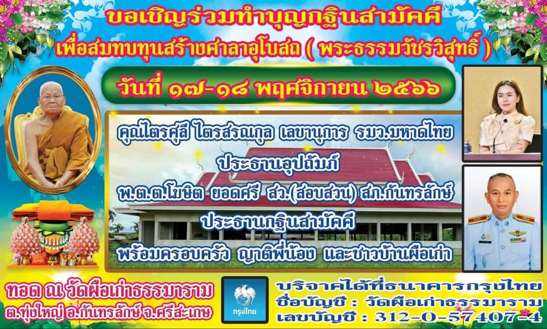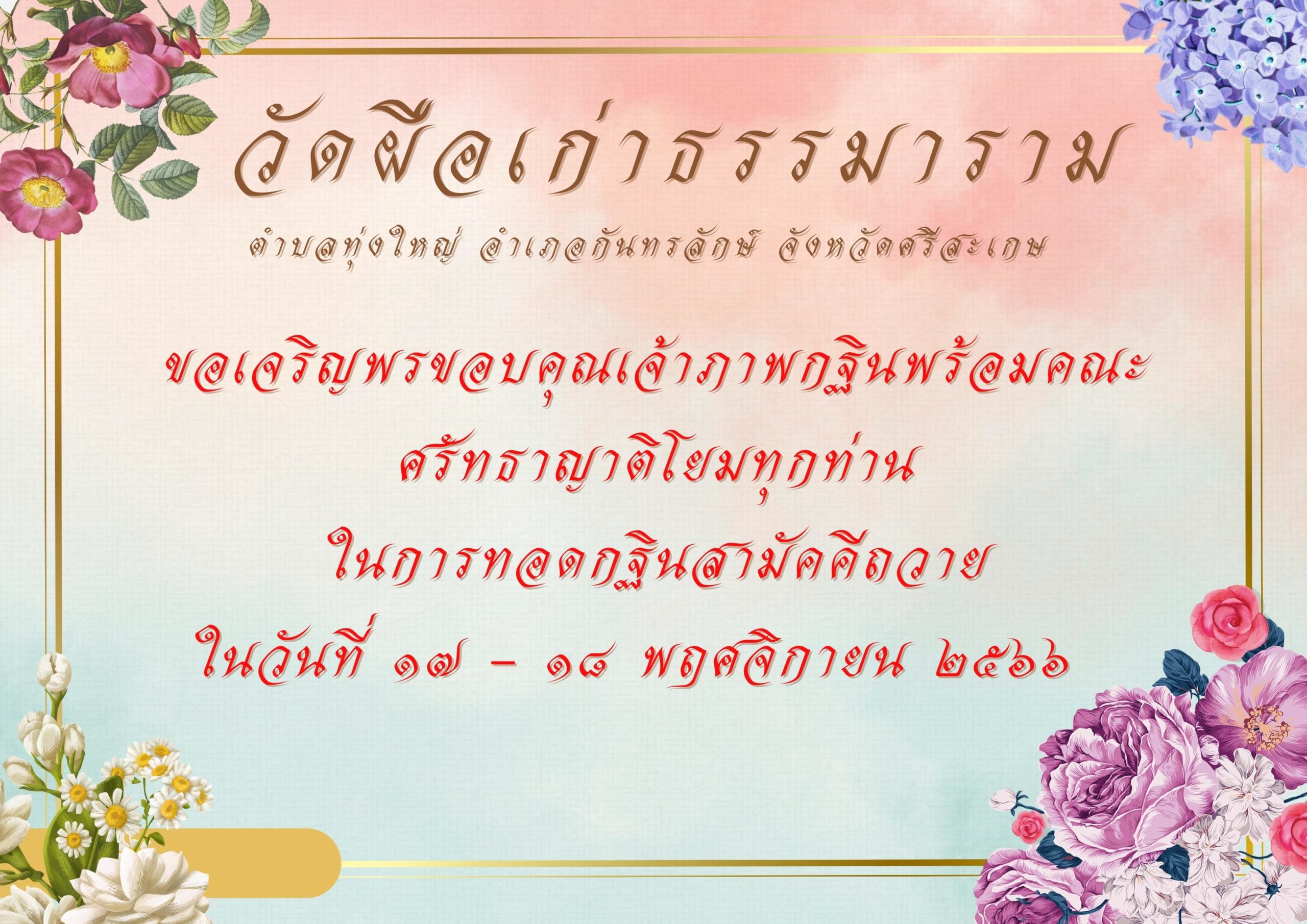 ขออำนาจคุณพระศรีรัตนตรัยและสิ่งศักดิ์สิทธิ์ทั้งหลาย จงดลบันดาลให้ท่านผู้ร่วมบุญทั้งครอบครัว ญาติมิตร จงประสบแต่ความสุข ความเจริญทุกทิพราตรีกาลเทอญ