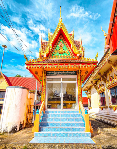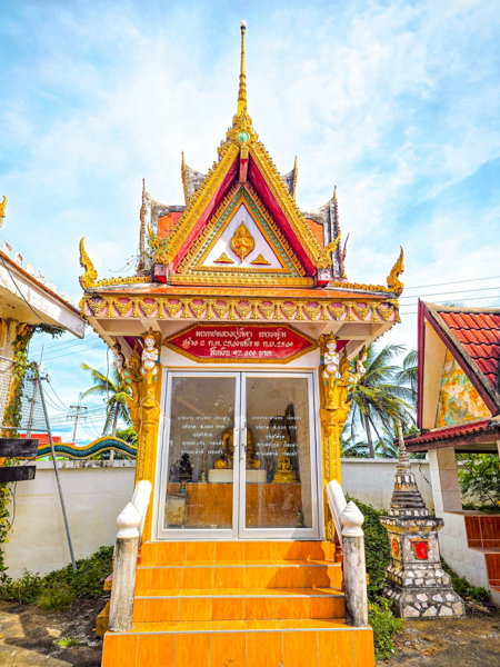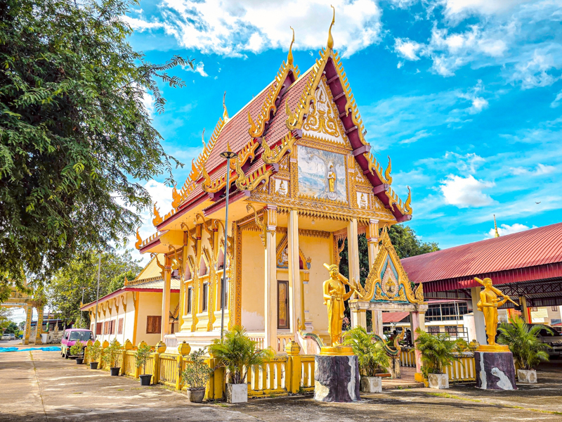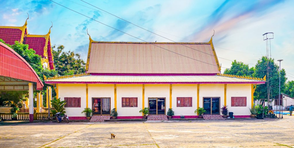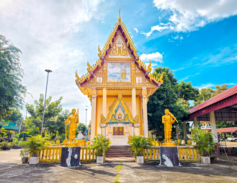 ศาลาการเปรียญ กว้าง ๑๒ เมตร ยาว ๒๑ เมตร อาคารคอนกรีตเสริมเหล็ก สร้างเมื่อ พ.ศ. ๒๕๒๕