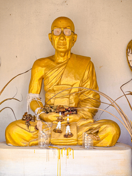 ขนาดหน้าตัก กว้าง ๓๙ นิ้ว สูง ๕๙ นิ้ว สร้างเมื่อ พ.ศ. ๒๕๒๐ - พระประธานประจำศาลาการเปรียญ ปางสมาธิพุทธชินราช