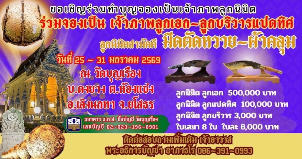 วัดบุญเรือง ตำบลห้องแซง อำเภอเลิงนกทา จังหวัดยโสธร