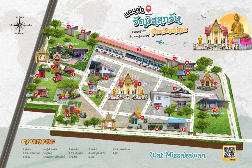 วัดมิสสกวัน ตั้งอยู่ที่บ้านม่วงกาซัง หมู่ที่ ๙ ตำบลสววท อำเภอเลิงนกทา จังหวัดยโสธร สังกัดคณะสงฆ์มหานิกาย
