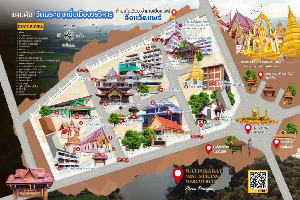 วัดพระบาทมิ่งเมืองวรวิหาร ตั้งอยู่เลขที่ ๑๖ ถนนเจริญเมือง ตำบลในเวียง อำเภอเมือง จังหวัดแพร่ อยู่ทางทิศตะวันออกเฉียงใต้ของศาลากลางจังหวัด เป็นวัดที่เกิดจากการรวมตัว ๒ วัด คือ วัดพระบาทกับวัดมิ่งเมือง เป็นวัดพระบาทมิ่งเมือง ต่อมาได้รับพระกรุณาโปรดเกล้าฯ พระราชทาน พระบรมราชานุญาตให้ยกฐานะจากวัดราษฎร์ให้เป็นพระอารามหลวง ชั้นตรี ชนิดวรวิหาร