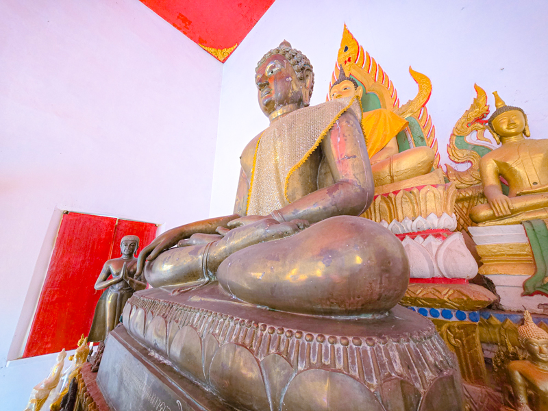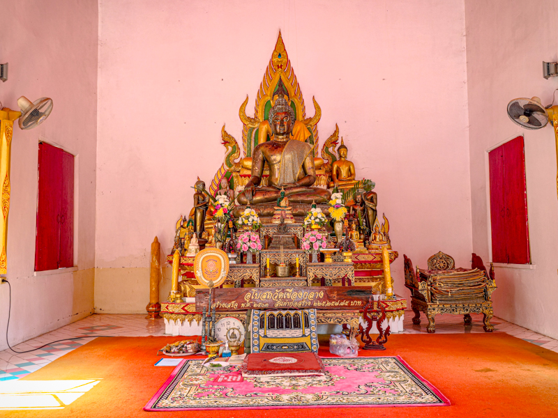 พระประธานภายในอุโบสถ เป็นพระพุทธรูปทองเหลืองหล่อ ลงรักปิดทอง ปางมารวิชัยหน้าตักกว้าง ๓.ศอก ไม่ปรากฏพระนามอัญเชิญมาจากกรุงเทพมหานคร เมื่อ พ.ศ. ๒๔๙๙
