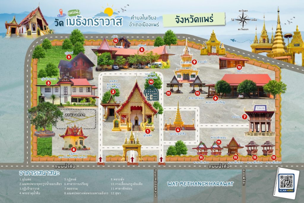 วัดเมธังกราวาส รหัสวัด ๑๓๕๔๐๑๐๑๐๑๑ ตั้งอยู่ที่ ชุมชนน้ำคือ เลขที่ ๑ ตำบลในเวียง อำเภอเมืองแพร่ จังหวัดแพร่ โทรศัพท์ ๐๕๔๕๑๑๔๑๐ สังกัดคณะสงฆ์มหานิกาย