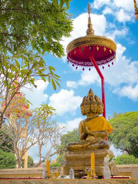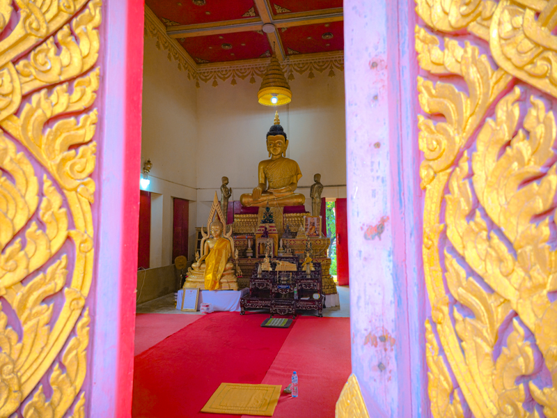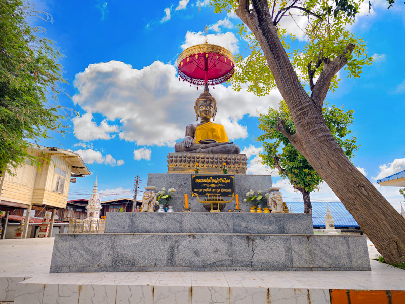 พระสังกัจจาย ประจำวิหารปูนปั้นลงรักปิดทอง ขนาดหน้าตักกว้าง ๑ เมตร