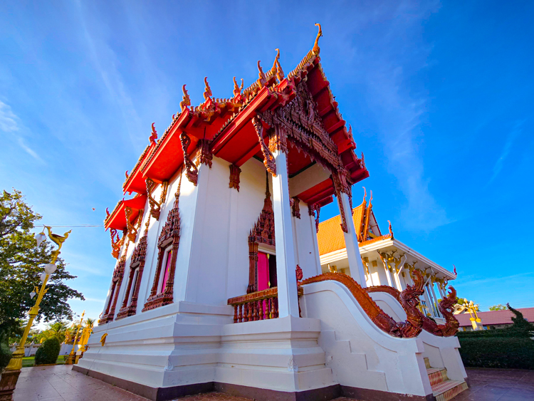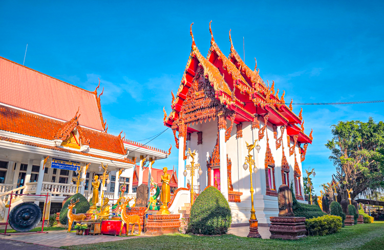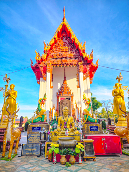 ๒.ญาคูหลักคำ เป็นเจ้าอาวาสสืบต่อมา ได้มีการก่อสร้างสืบต่อดังนี้ สร้างโบสถ์ ก่อด้วยอิฐก้อนใหญ่ กว้าง ๓ วา ยาว ๔ วา ฉาบด้วยยางบงผสมแกลบ และน้ำอ้อย มุงด้วยหญ้าแฝก เมื่อเดือน กุมภาพันธ์ พ.ศ.๒๔๓๕ และสร้างศาลาด้วยเสาไม้แก่น ถากกลมจำนวน ๘ ต้น มีระเบียงรอบเป็นศาลาที่ไว้ทำกิจชัวคราว