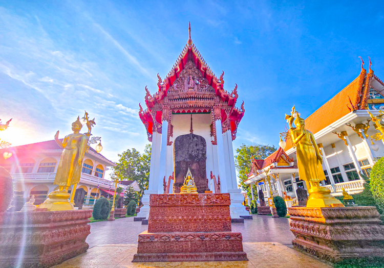 หมู่บ้านยาวขนานไปกับทุ่งจากทิศตะวันตกไปทิศตะวันออก ๒๘ เส้น วัดตั้งอยู่ระหว่างกลางหมู่บ้าน