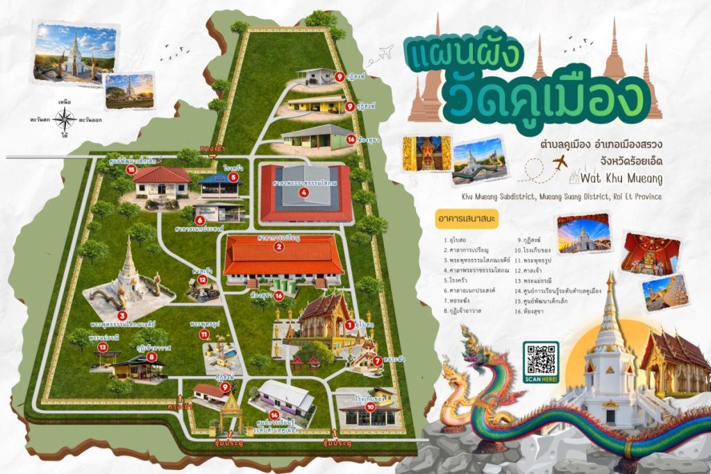 วัดคูเมือง เริ่มตั้งขึ้นประมาณ ปี พ.ศ. ๒๓๗๐ หลังจากตั้งหมู่บ้านได้ประมาณ ๘ ปี โดยตั้งอยู่ทางทิศใต้ของหมู่บ้านแล้วย้ายไปตั้งใหม่ห่างจากเดิมประมาณ ๒๐๐ เมตร จากนั้นก็ย้ายไปตั้งอยู่ทางทิศตะวันออกของหมู่บ้านแล้วก็ย้ายไปอยู่ทางทิศตะวันตกเฉียงใต้ของหมู่บ้าน สุดท้ายก็ได้ย้ายมาอยู่ทางทิศเหนือของหมู่บ้านคือที่อยู่ปัจจุบันนี้ อันเนื่องจากการย้ายไปย้ายมาหลายครั้ง จึงมีชื่อเรียกหลายชื่อดังกล่าวแล้วข้างต้น และมีที่ธรณีสงฆ์หลายแปลงได้สำรวจเป็นหลักฐานแน่นอน ขึ้นโฉนดต่อกรมการศาสนา ๒ แปลง คือ แปลงทิศตะวันออกของหมู่บ้าน และแปลงที่อยู่ทางทิศตะวันตกเฉียงใต้ของหมู่บ้าน เหลืออีก ๒ แปลง ขึ้นอยู่กับที่ดินสาธารณะประโยชน์ ดอนปู่ตา ในการเริ่มตั้งวัดมาเป็นเวลานับร้อยกว่าปี พึ่งมีปรากฏว่าได้สร้างอุโบสถในสมัยพระครูสุธรรมจันทคุณเป็นเจ้าอาวาส ส่วนการสร้างศาลามีมาทุกยุคทุกสมัยของเจ้าอาวาส เฉพาะที่ตั้งวัดปัจจุบันนี้มีการสร้างศาลามาแล้ว ๓ หลัง แต่ละหลังก็สร้างไปตามยุคตามสมัย