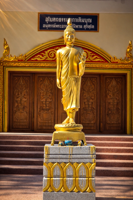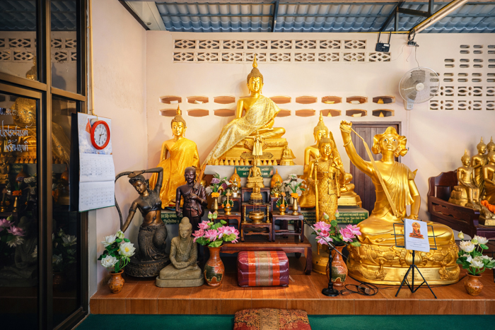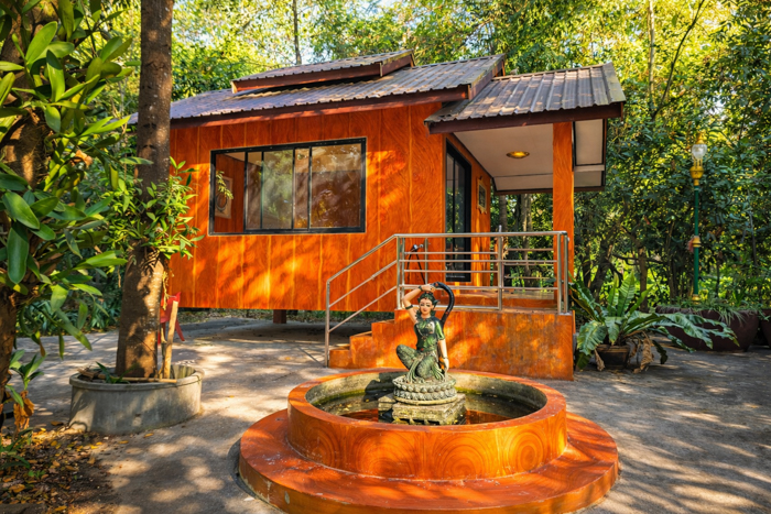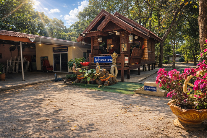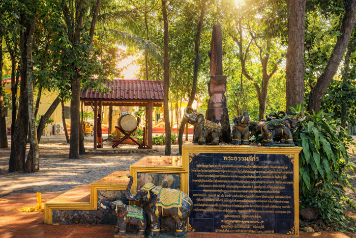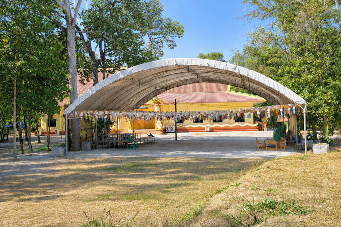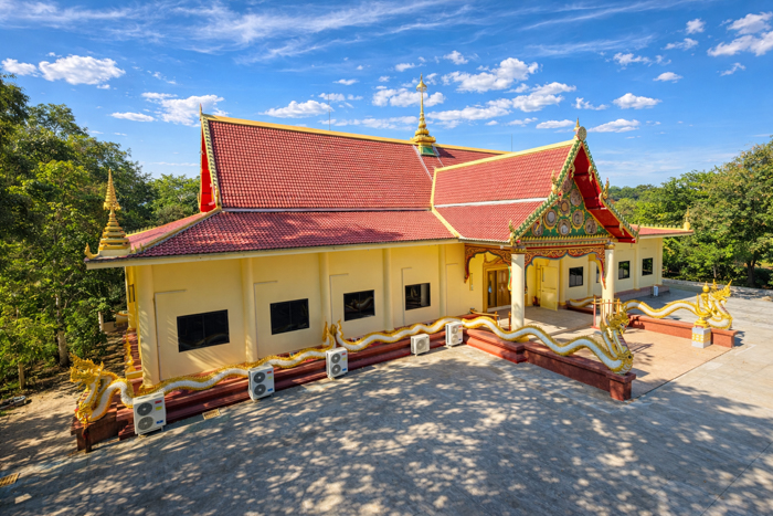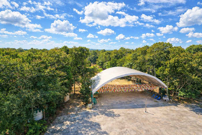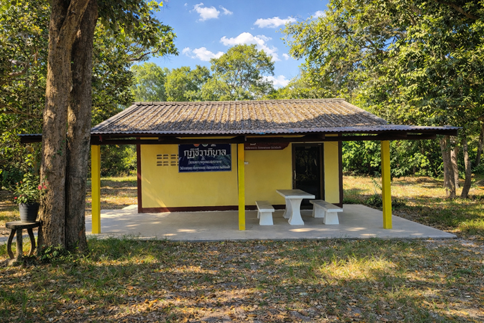 ปี พ.ศ. 2530 โยมบุญส่ง ชินสอน ได้ปรารถนาถวายที่สร้างวัดในช่วงเดือนพฤษภาคม และมิถุนายนก่อนเข้าพรรษา ฉันกลางกลดนอนอยู่ที่แห่งนี้ เป็นฤดูฝนฉันลำบากมาก บางคืนนอนอยู่กับน้ำฝน เพราะกลางวันฉันทำงานเหนื่อยทั้งวัน ฉันคิดอยู่เสมอว่าที่ที่ฉันเคยอยู่อยากได้ล้อพระธรรมจักรมาตั้งไว้เพื่อบูขาพระรัตนตรัย ความฝันก็ยังลม ๆ แล้ง ๆ อยู่หลายครั้ง ในที่สุดความเคารพเลื่อมใสด้วยใจบริสุทธิที่อยากได้พระธรรมจักรท็เป็นจริงขึ้นมาเป็นลำคับ เมื่อโยมสูญโยมเย็น ได้นำอิฐมาก่อเป็นโครงไว้ และต่อมาอาจารย์ สุวิทย์ พร้อมครอบครัวและญาติได้เป็นเจ้าภาพถวายลัยพระธรรมจักรไว้เพื่อความเหมาะสมในที้แห่งนี้ ฉันได้พากเพียร เรียนรู้ธรรมเรื่องสมาธิและวิปัสสนาตลอดทั้งทางโลกด้วยความลำบาก มีจิตวิญญาณในการสอนธรรมอยากให้ญาติโยมได้รู้ด้วยบริสุทธิใจ เรื่องให้ธรรมะเป็นทานแม้จะเหน็ดเหนื่อยเมื่อยล้าก็ไม่เลิกราถ้าโยมอยากรู้ได้สึ่งที่เป็นสัญญลักษณ์การเผยแพร่ศาสนามาตั้งไว้ที่อยู่จึงเป็นความภูมิใจอย่างยิ่ง