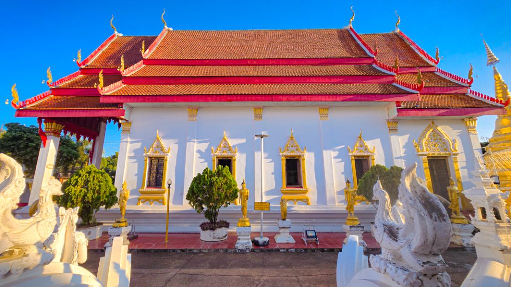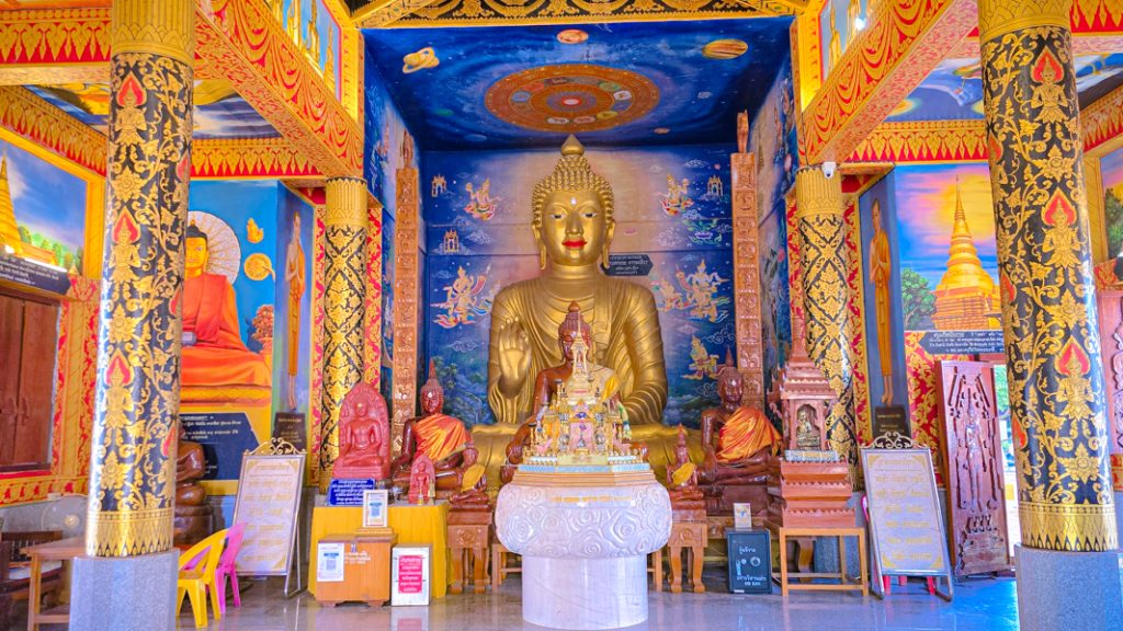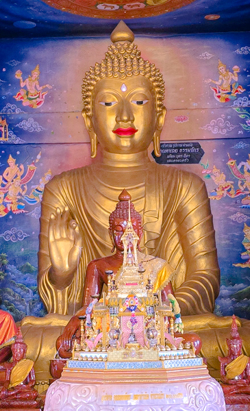 พระแก้วมรกต เป็นพระพุทธรูปองค์จำลอง ประดิษฐานไว้ในวิหาร