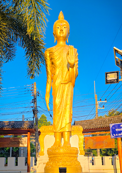 พระพุทธสมปรารถนา (พระเจ้าทันใจ) ยืนชี้นิ้วแบบพม่า สร้างในสมัยพระครูโกวิทอรรถวาทีในปี พ.ศ.2557